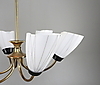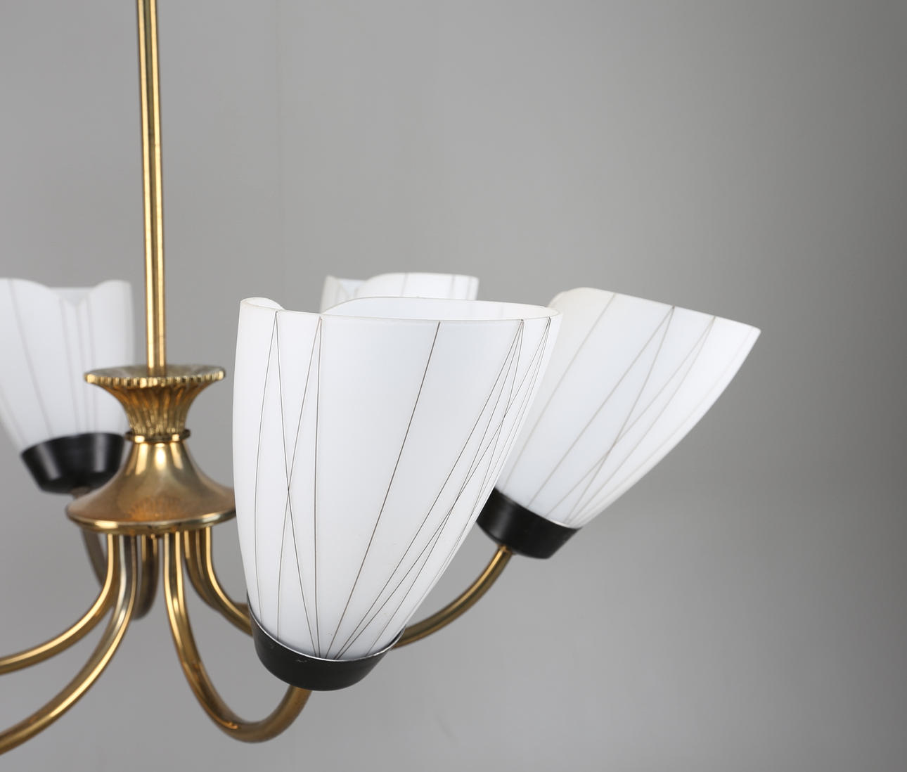 6 Kerzenarme, Gestell aus Messing, Tassen aus Keramik mit Dekoration in Schwarz.