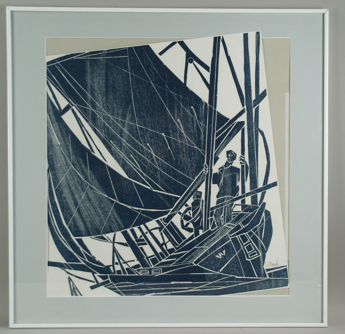 1287589. - WILLAND, DETLEF. Das Segelboot, Farbholzschnitt in Blau.