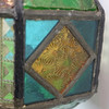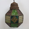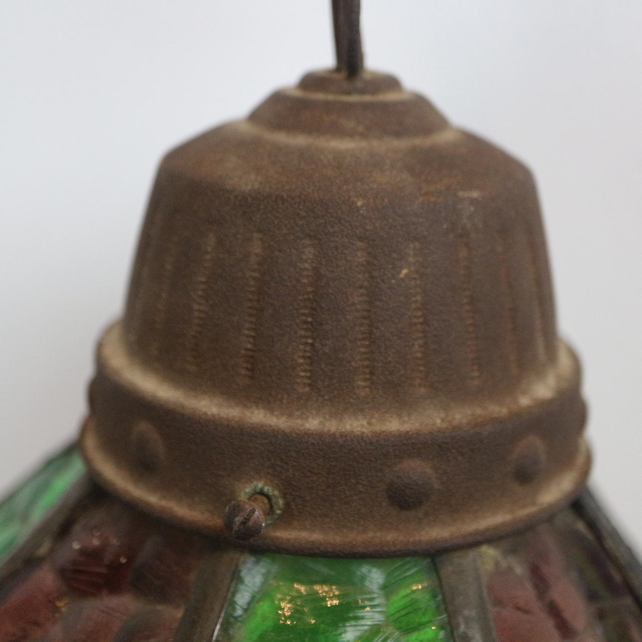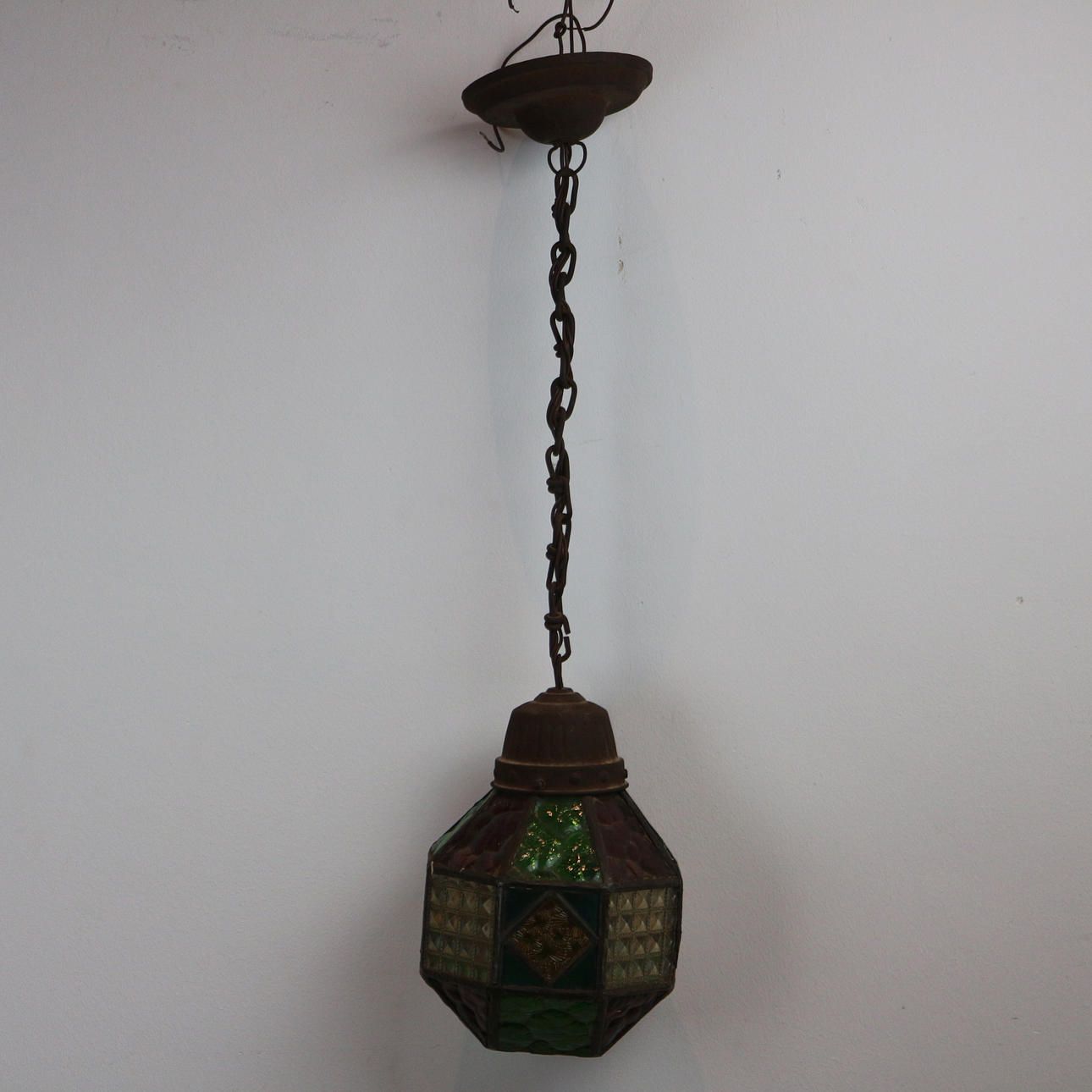 Elektrisierte Hängelampe, Butzenglas und Buntglas. Ca. 1930. Maße Lampenkorpus: 26 cm. Länge mit Kabel und Deckenmontur: 60 cm.
