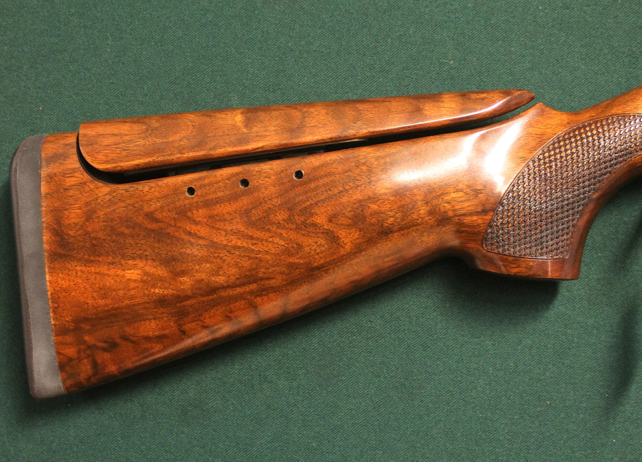 Einstellbarer Abzug. Externe Drosseln lösen. Stahlfarbene Gravur mit Text in Gold Kolben mit Pistolengriff und einstellbarer Kolbennocke. Rückseite aus Gummi. Koffer mit Zubehör und 3 zusätzlichen Chokes enthalten.