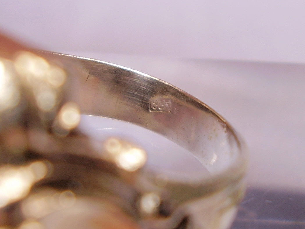 Der antike Ring ist in Silber 835 gearbeitet und auch so punziert.