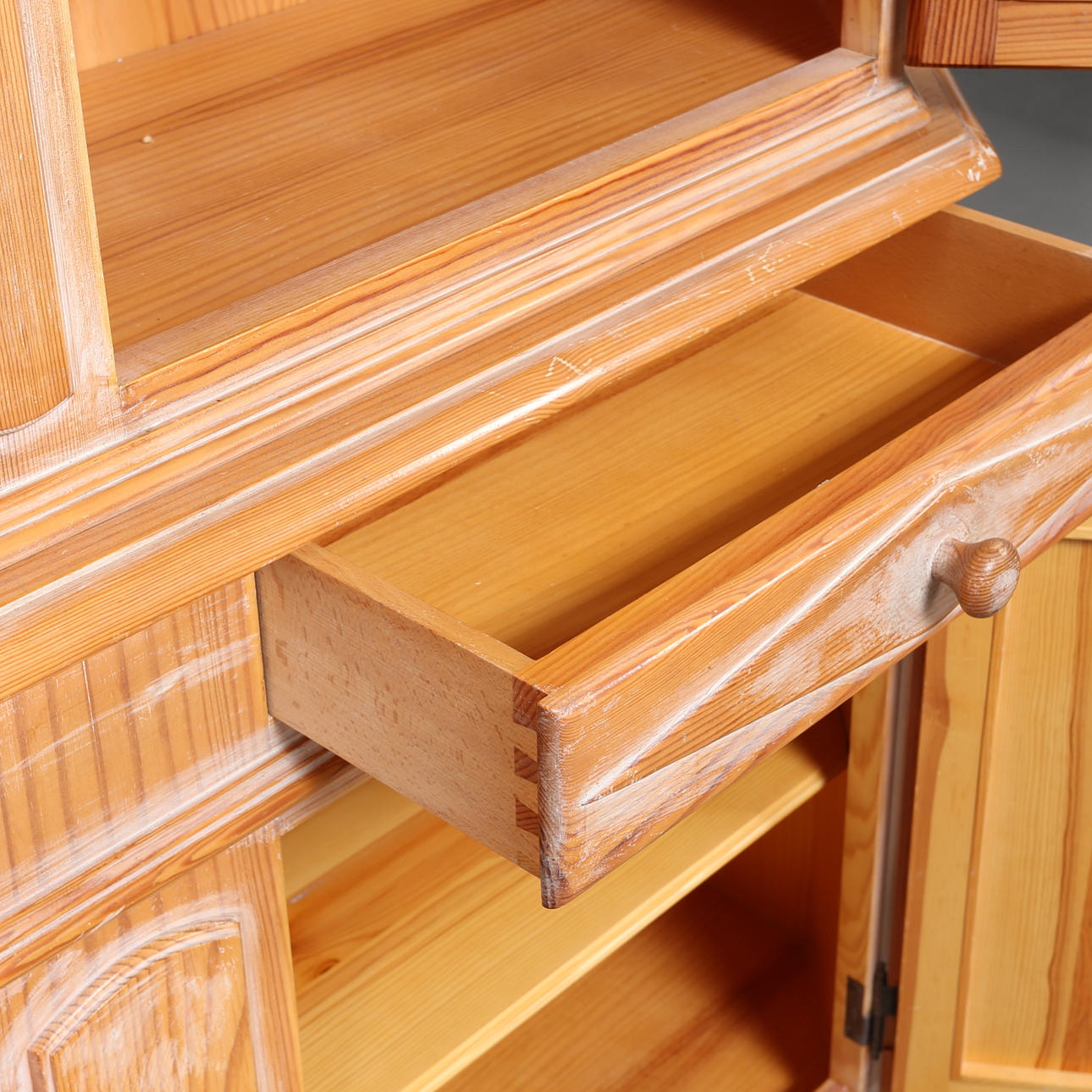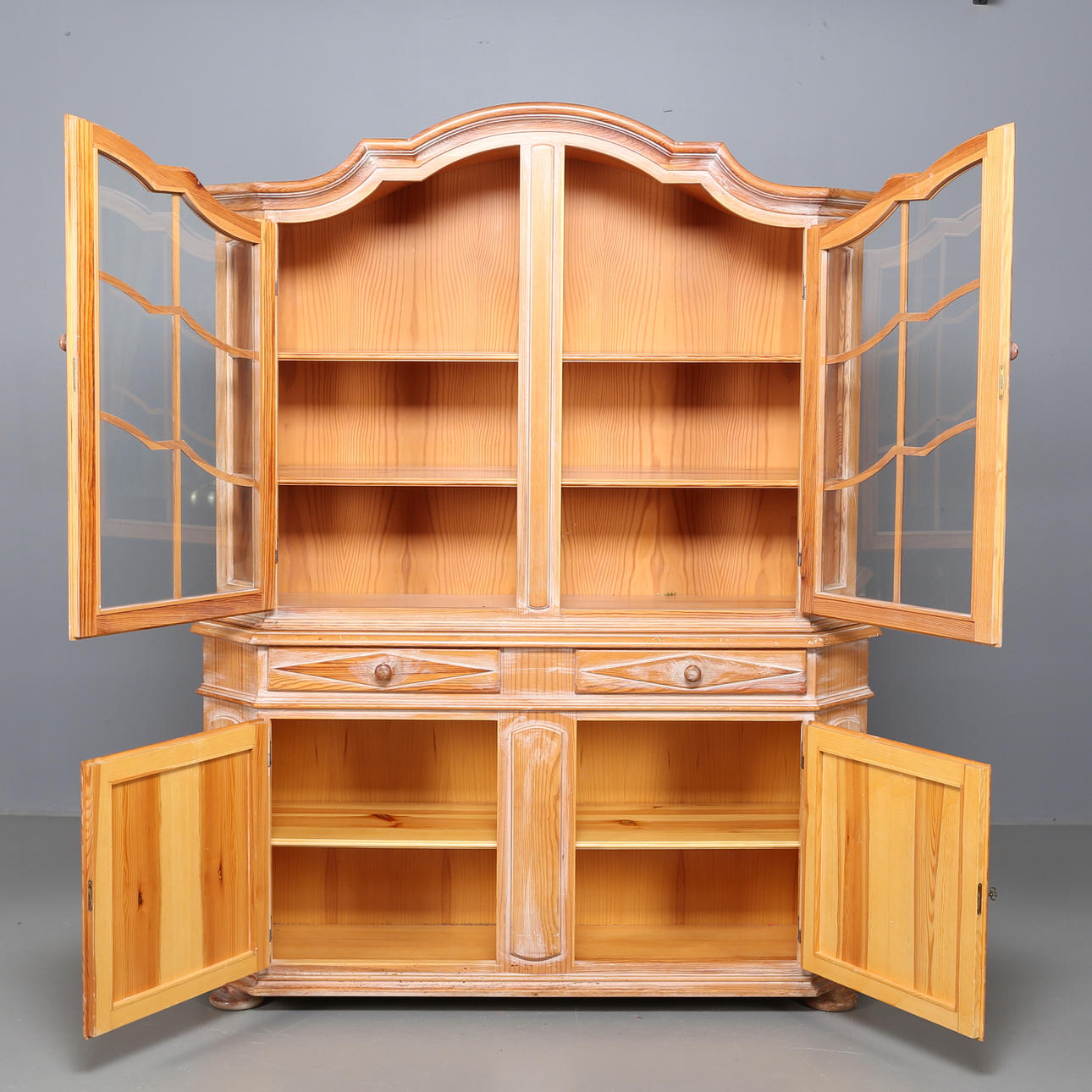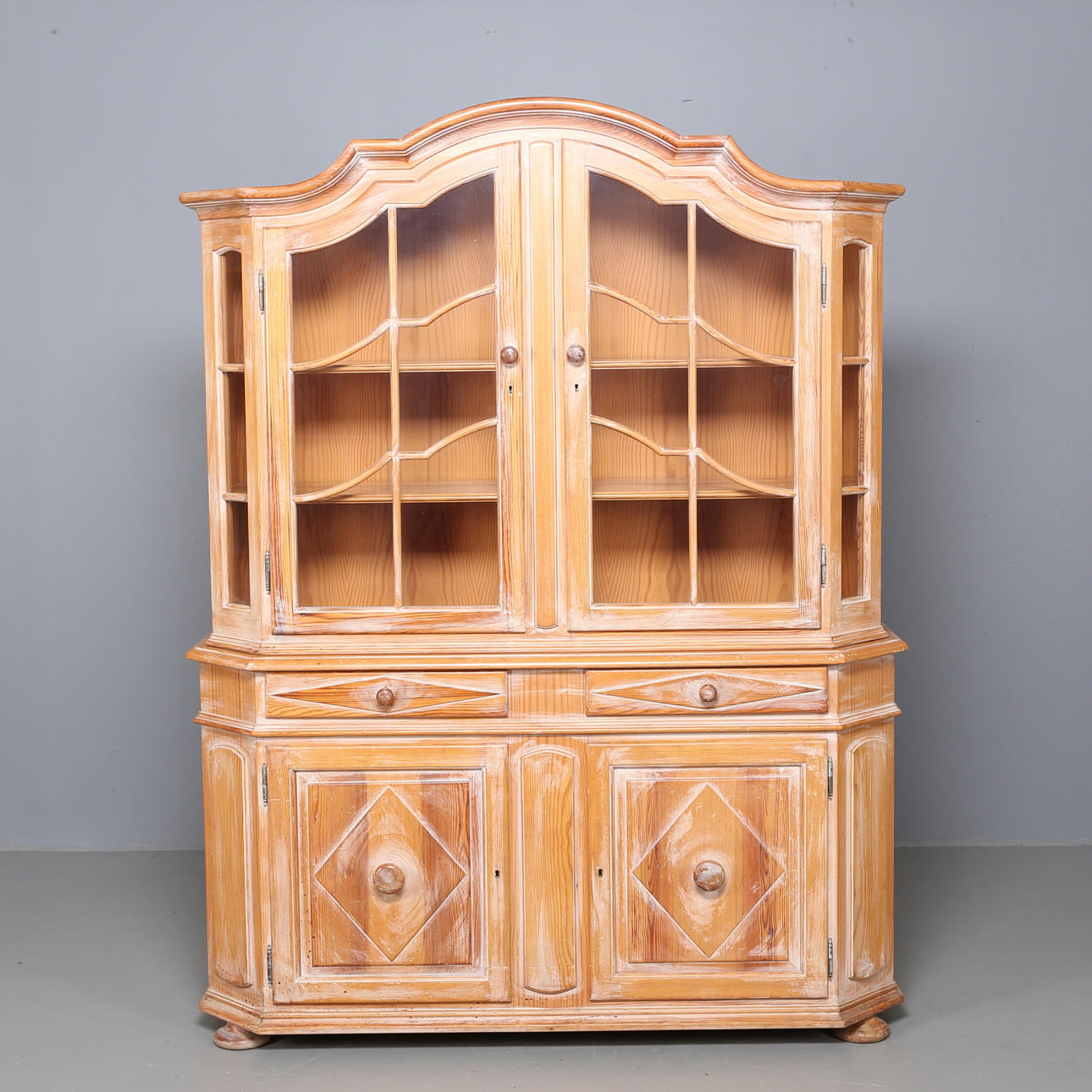 1307819. GLASSCHRANK, gekalkte Kiefer.