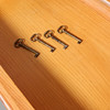Zweiteiliger Schrank mit verglastem Oberteil, Einlegeboden und Schubladeninnenraum, Lamellen, Türspiegel mit Rauten, umgedrehte Krone, Ende 20. Jh., Höhe ca. 202 cm, Breite 160 cm, Tiefe 45 cm.