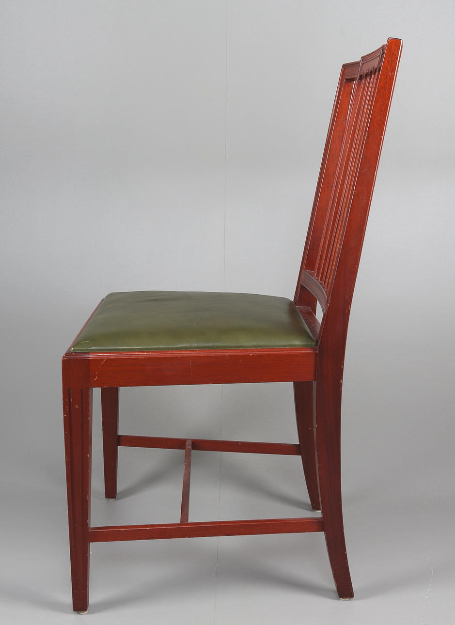 Provenienz: Vom Architekten entworfene Esszimmergruppe für Prinzessin Birgitta. Hergestellt bei Åfors Möbelfabriks AB, 2 zusätzliche Stühle wurden auf Bestellung gefertigt, von denen 1 jetzt zum Verkauf steht.