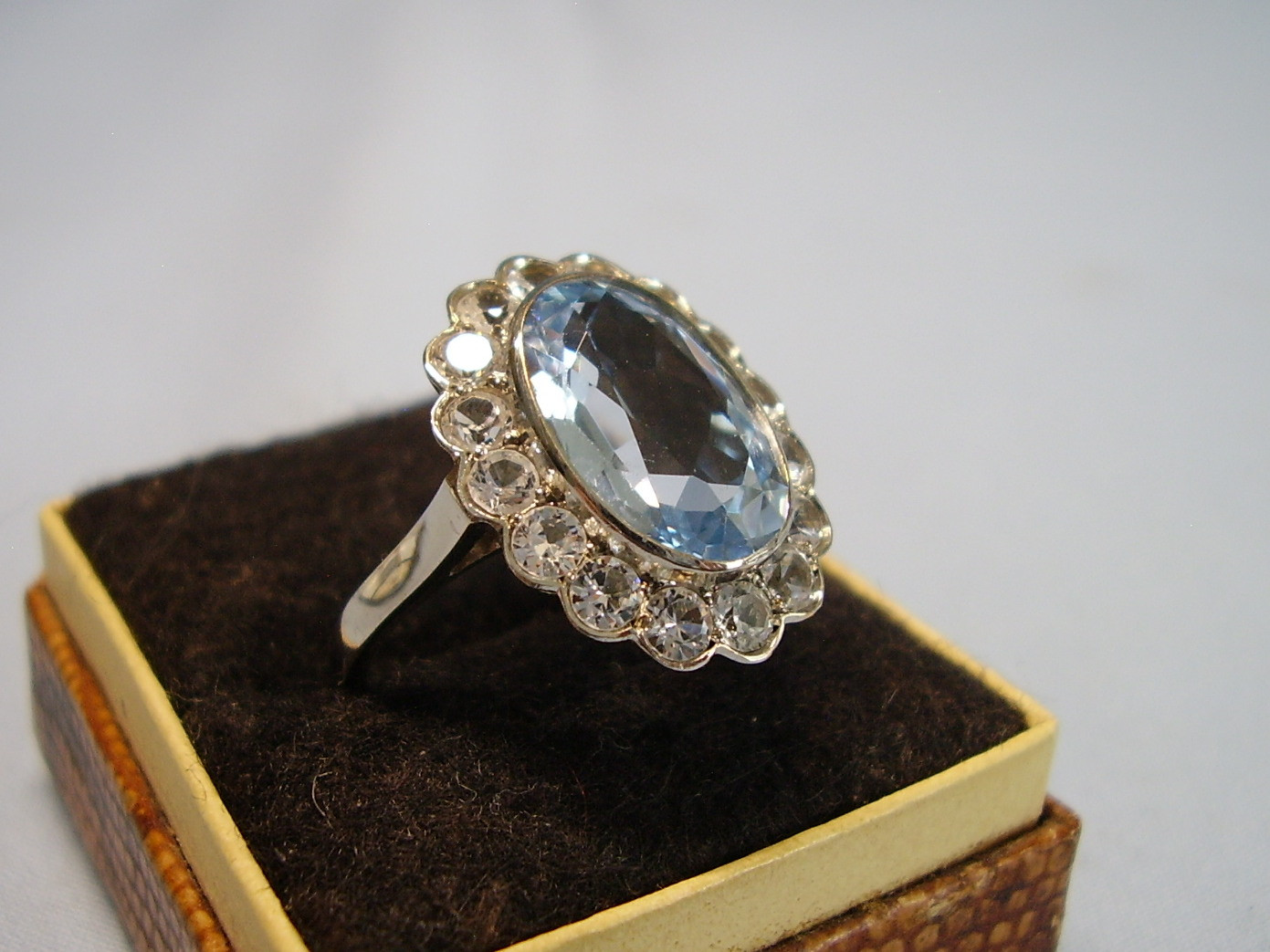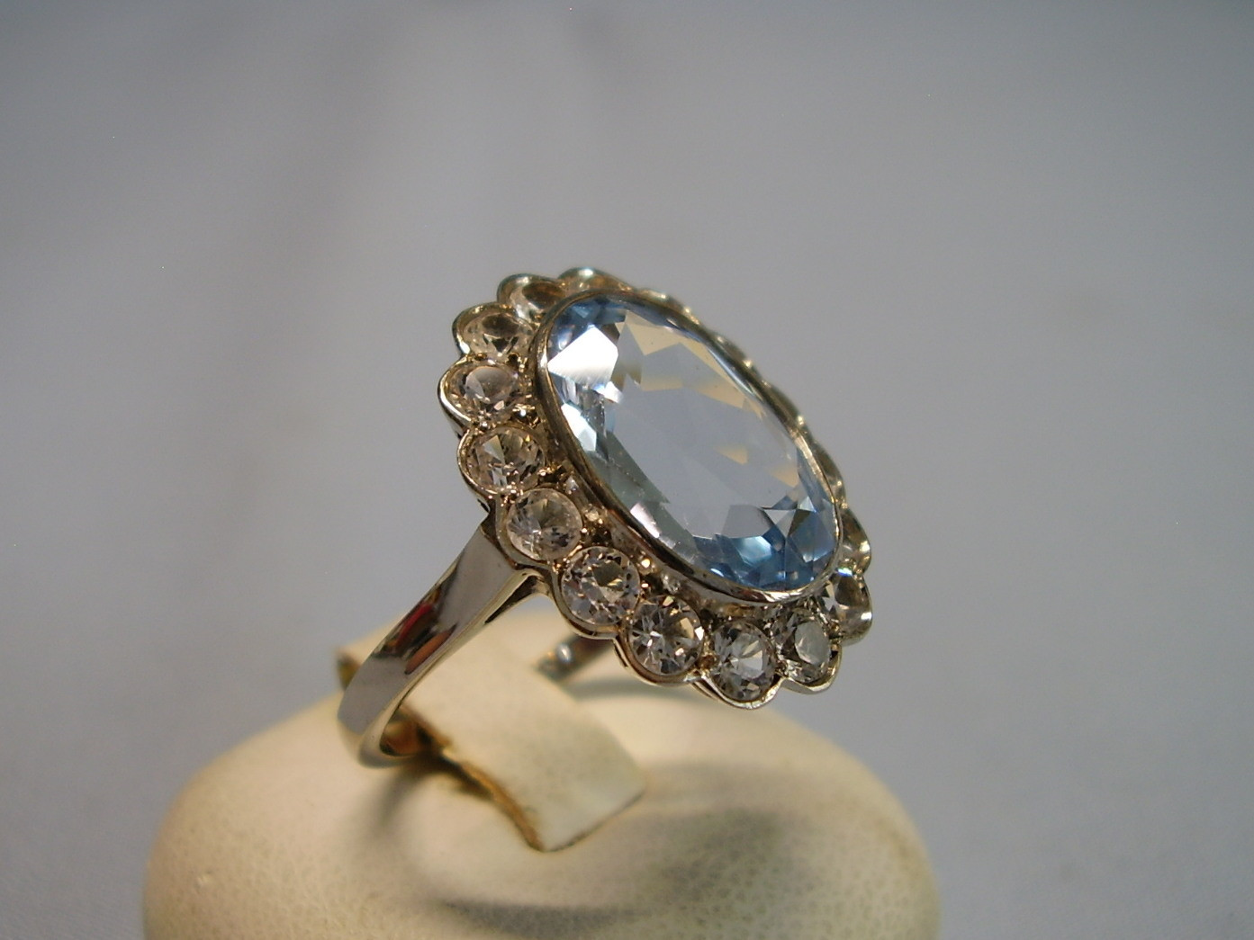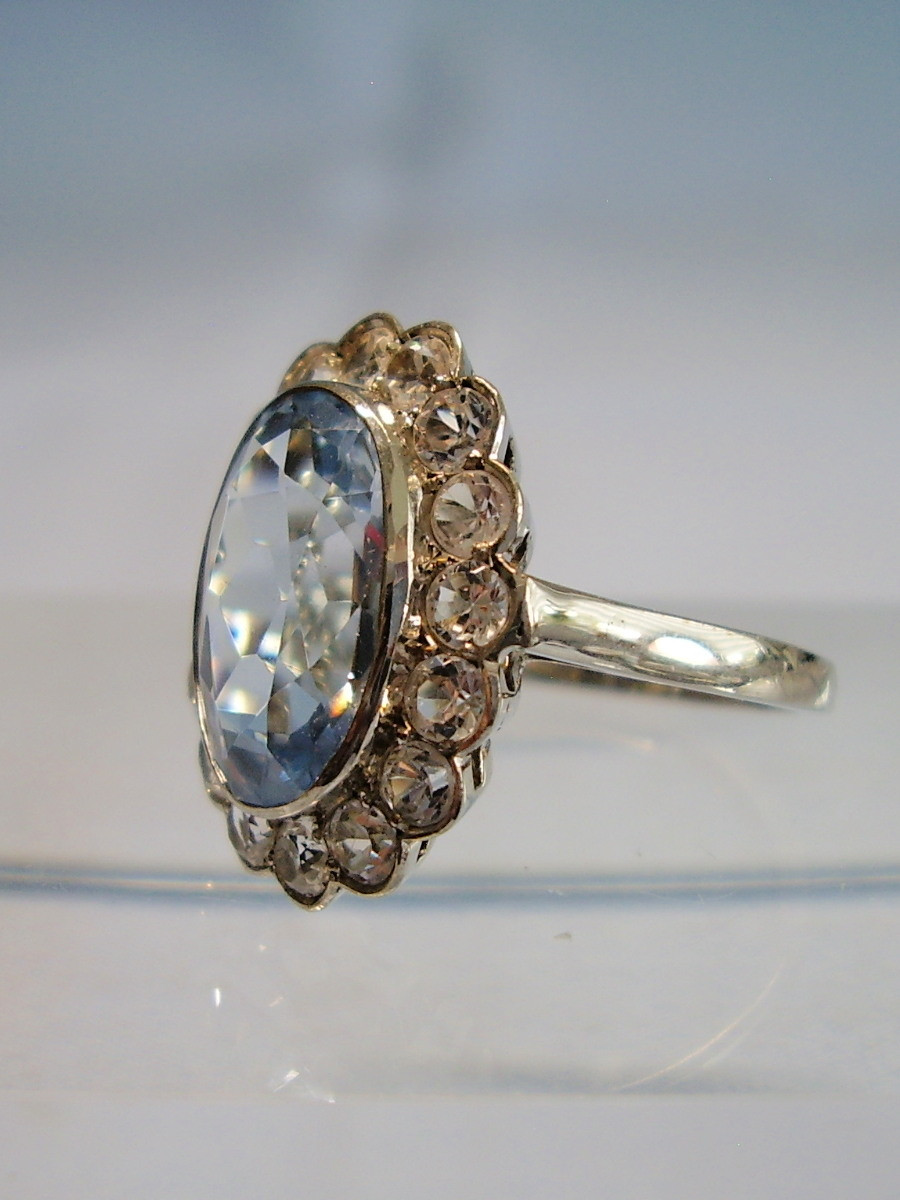 1313235. RING SILBER 935 ANTIK BLAUER SPINELL ART DECO.