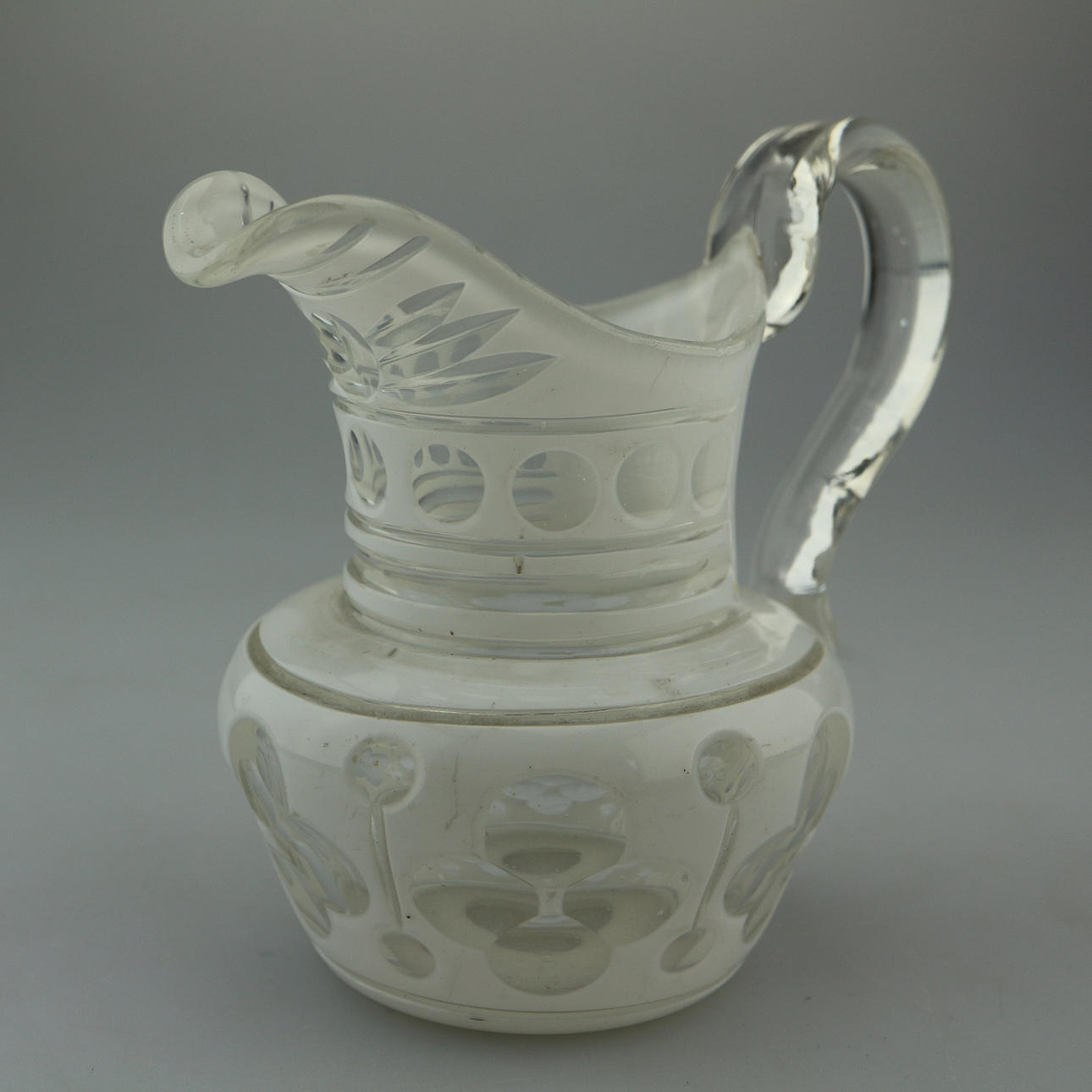 Böhmisch, Biedermeier Kännchen, handgeschliffen, Mitte 19. Jahrhundert, Höhe: 12,5 cm.