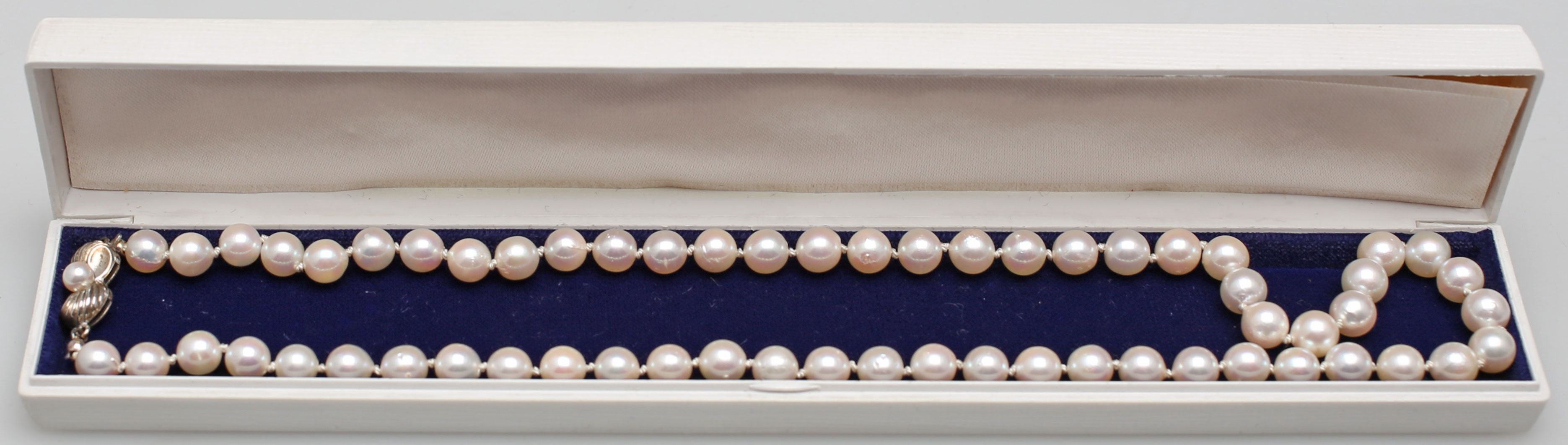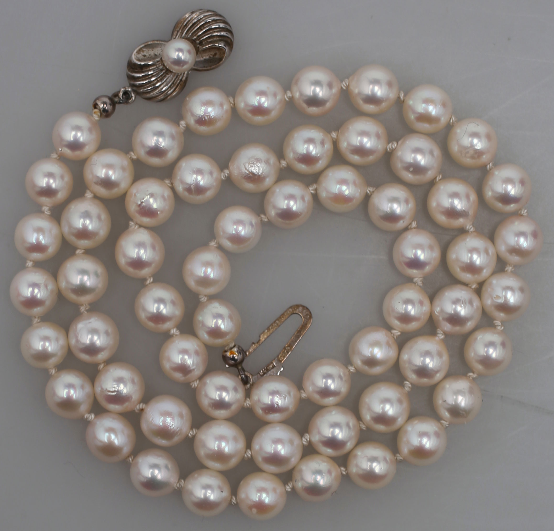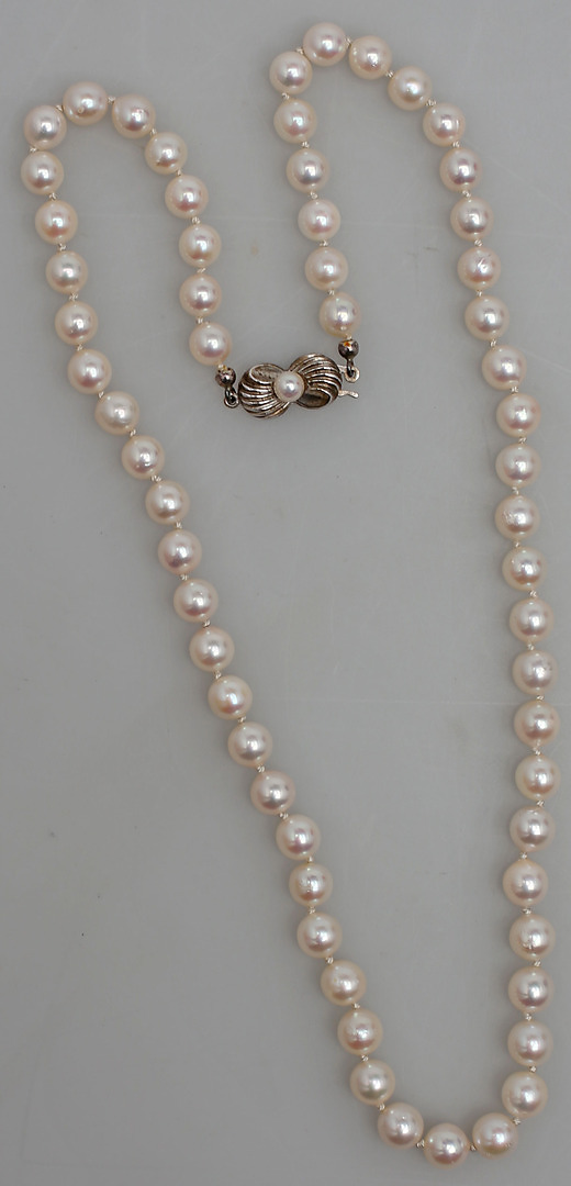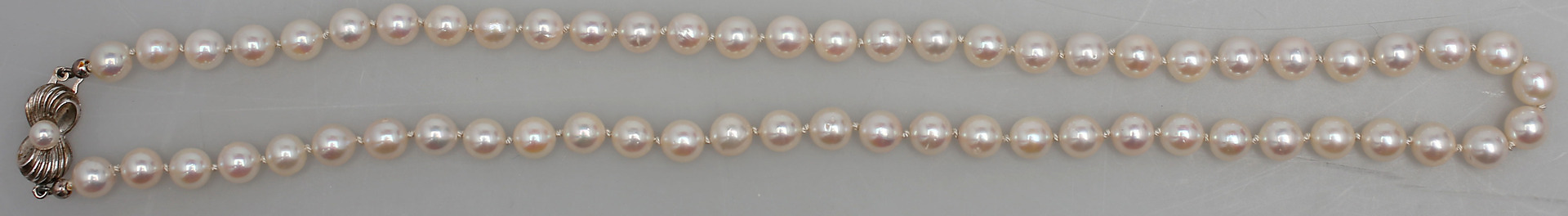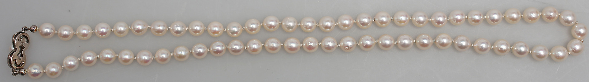 131666. PERLENHALSKETTE MIT SILBERSCHLOSS MIT PERLE.