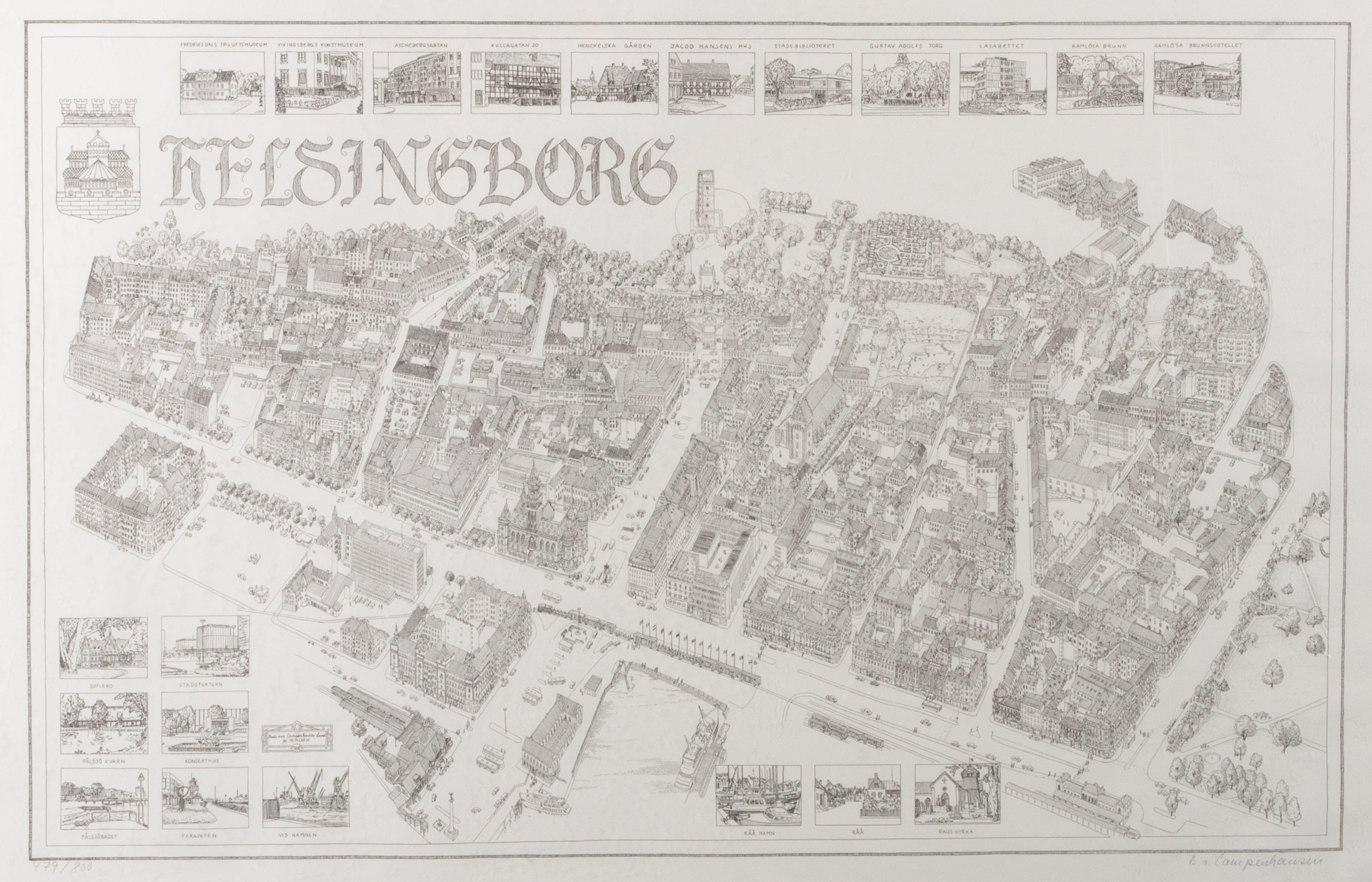1319173. BODO BALTHASAR FRANS VAN CAMPENHAUSEN. "Helsingborg", Lithografie, signiert.