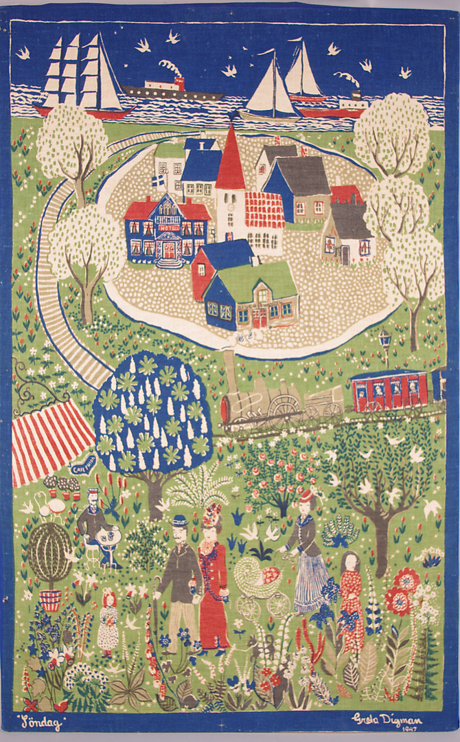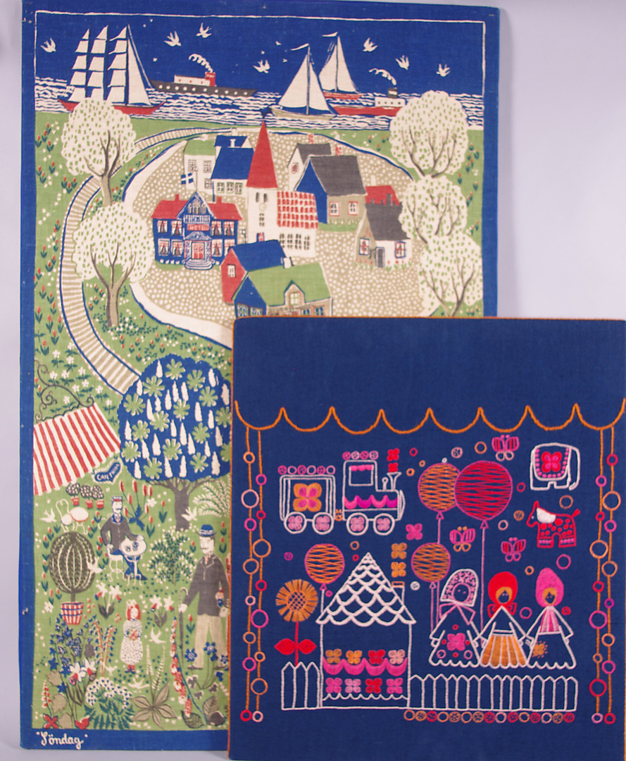 132127. TEXTILIEN, 2 Stück, u.a. "Sonntag" Greta Digman 1947.