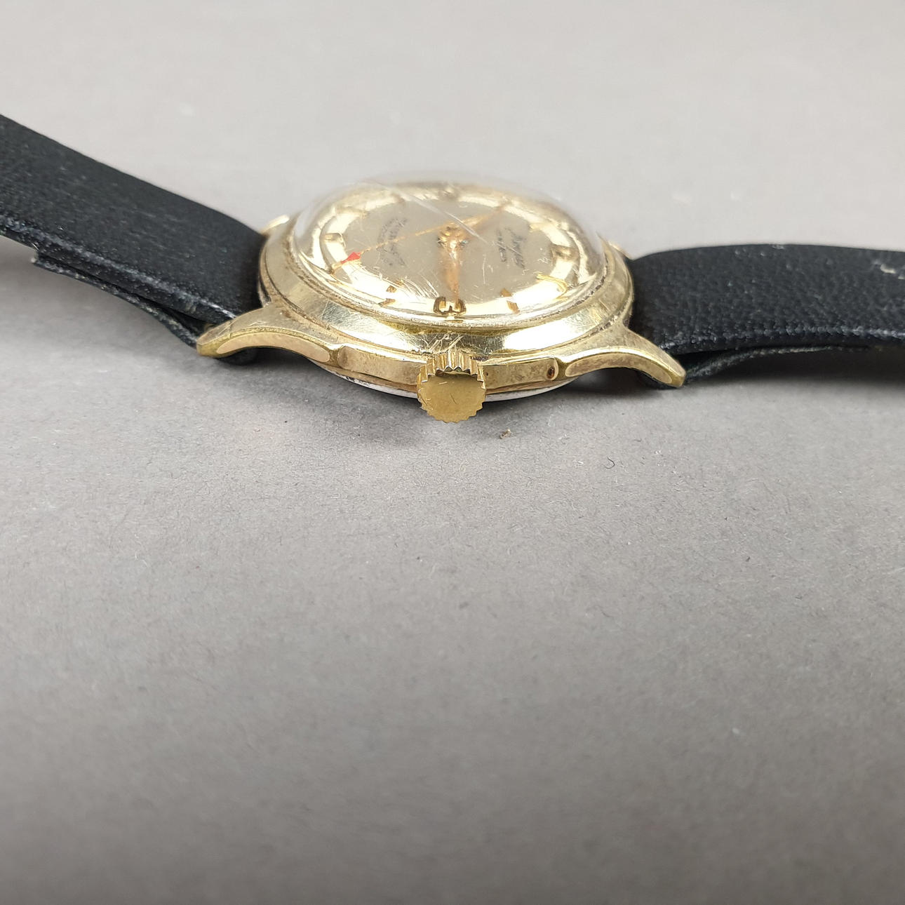Mögus - Handaufzug, Gehäuse 20 Mikron vergoldet, Durchmesser ca. 36 mm, Gewicht mit Band ca. 32 Gramm.