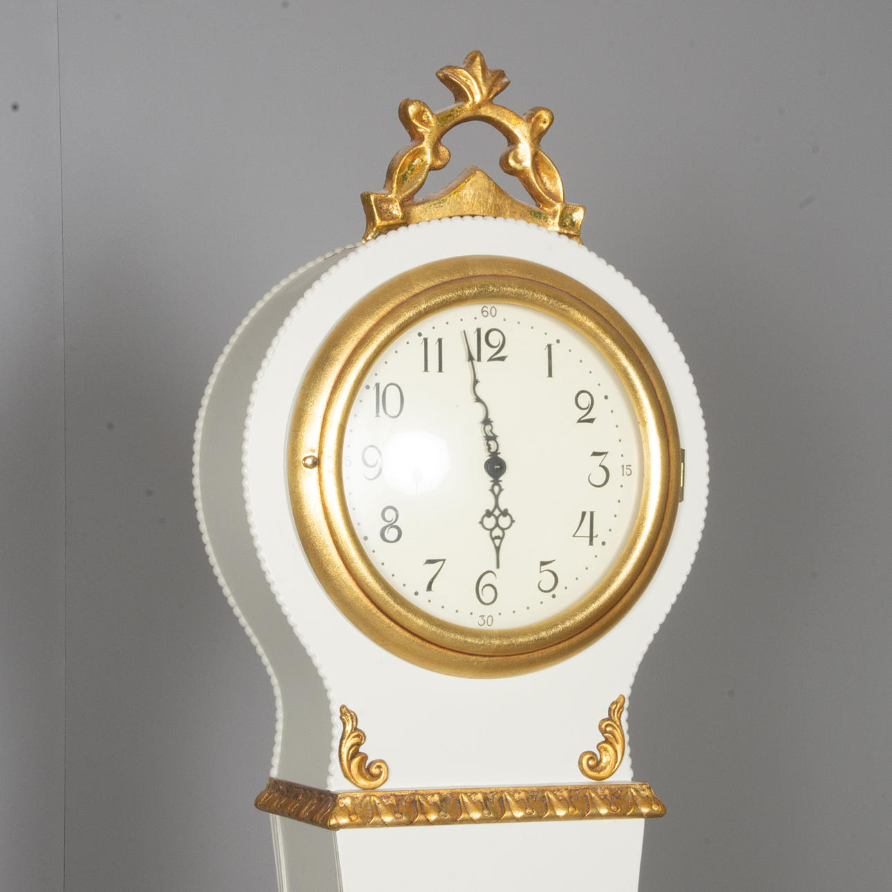 STANDUHR, weiß lackiert mit Vergoldung, Scan Clock.
