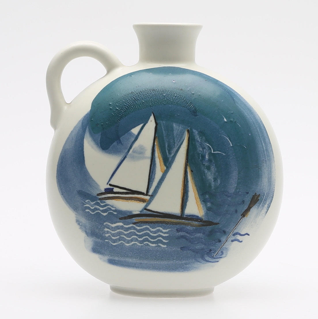Bemalter Dekor mit Booten auf See, Steingut. Signierter Stålhane. Höhe 16,5 cm.