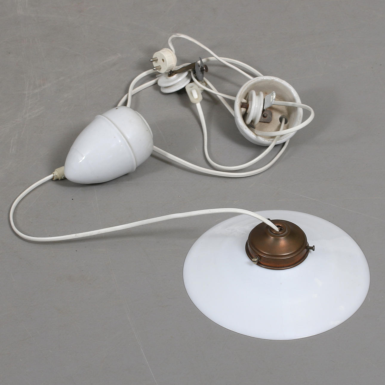 Schusterlampe, Metall, Opalglas, 20. Jahrhundert.