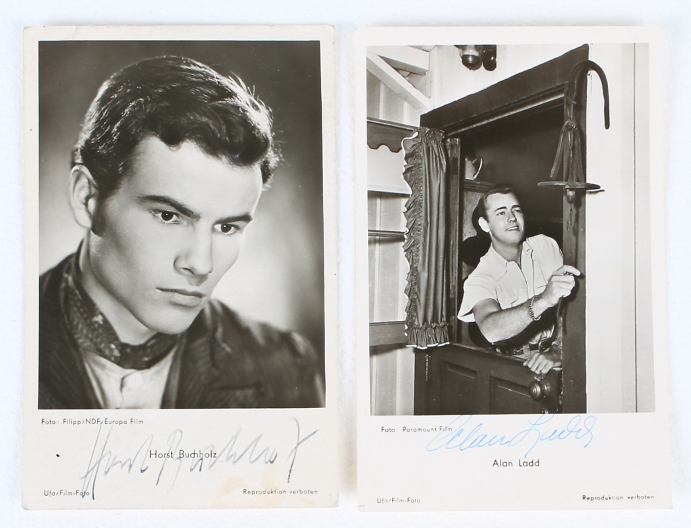 133916. AUTOGRAF, 2 Stück, Alan Ladd, Horst Buchholz.