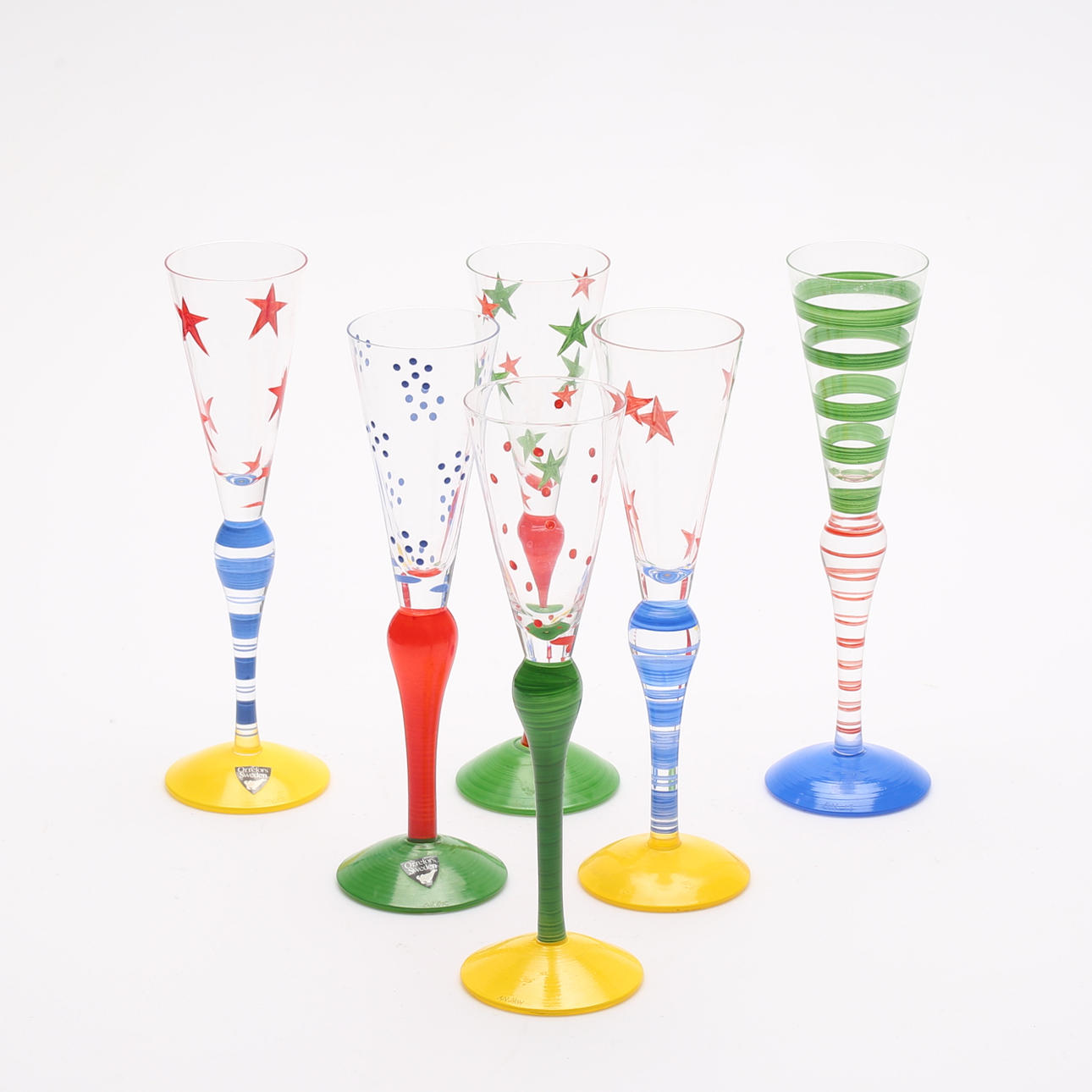 1340335. SNAPSGLAS, 6 Stück, "Clown", Anne Nilsson, Orrefors.