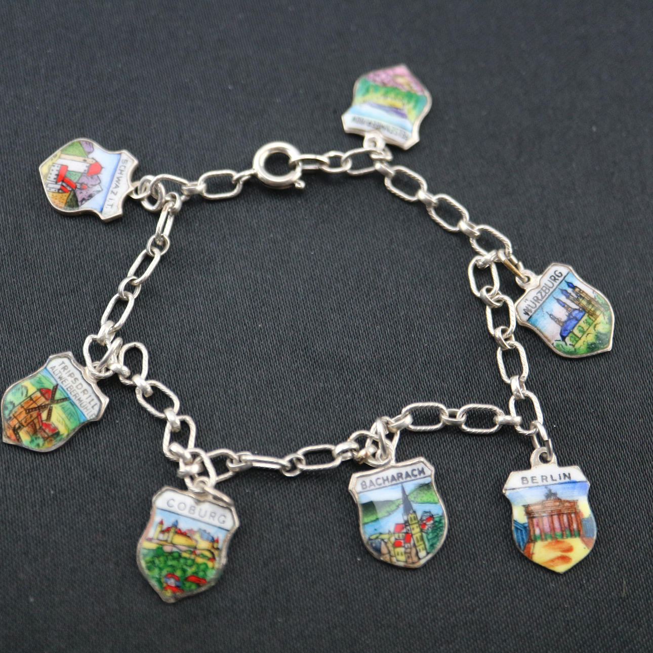 Städtearmband, 835 Silber, mit 7 Stadtmotiven/Wappen mit jeweils 800 Silber, Länge: 19 cm.