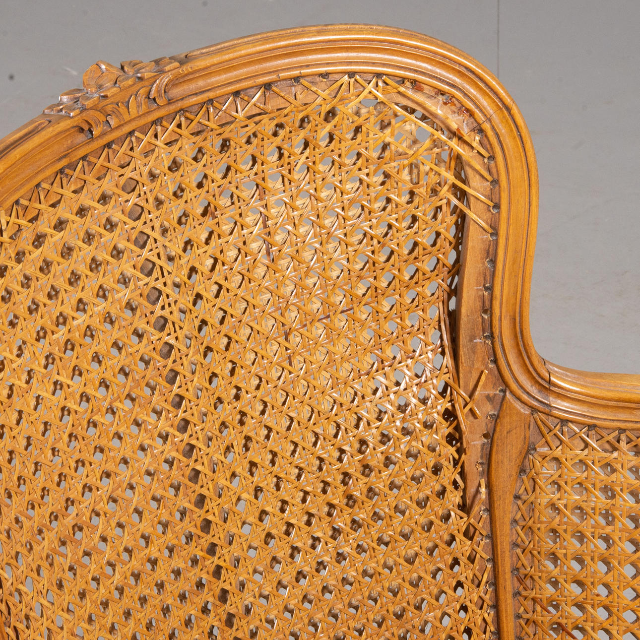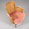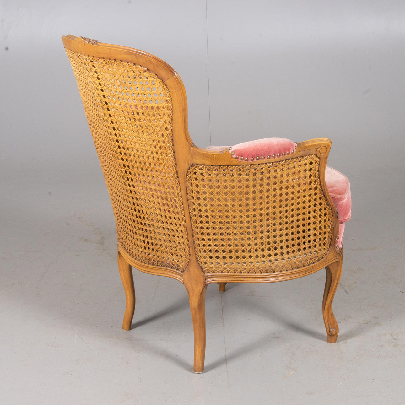 1343821. ARM CHAIR, Nussbaum/Rattan mit Plüschpolsterung.