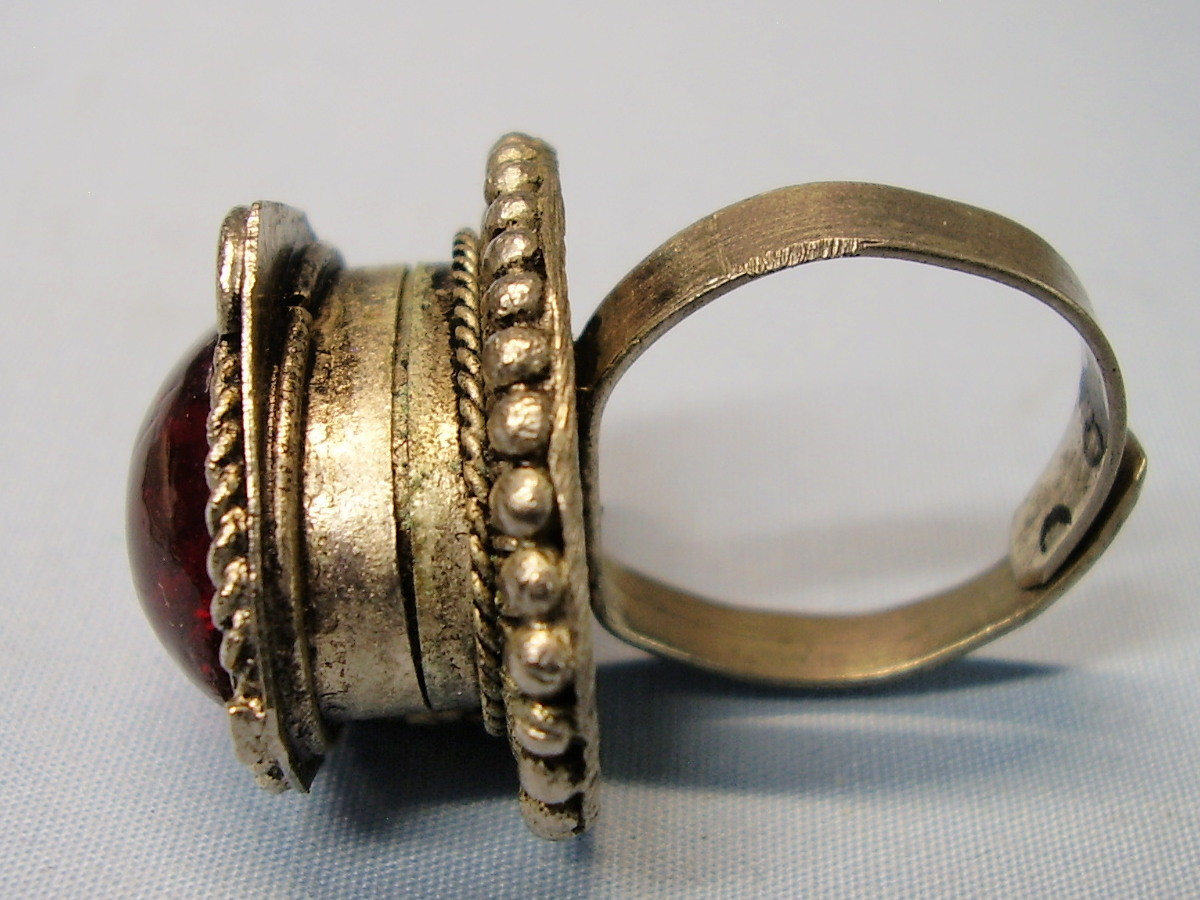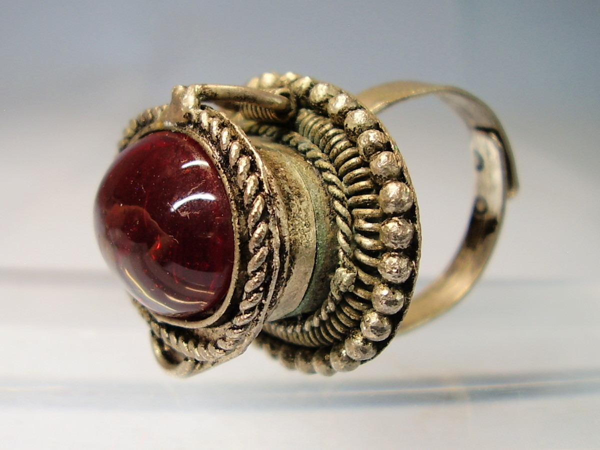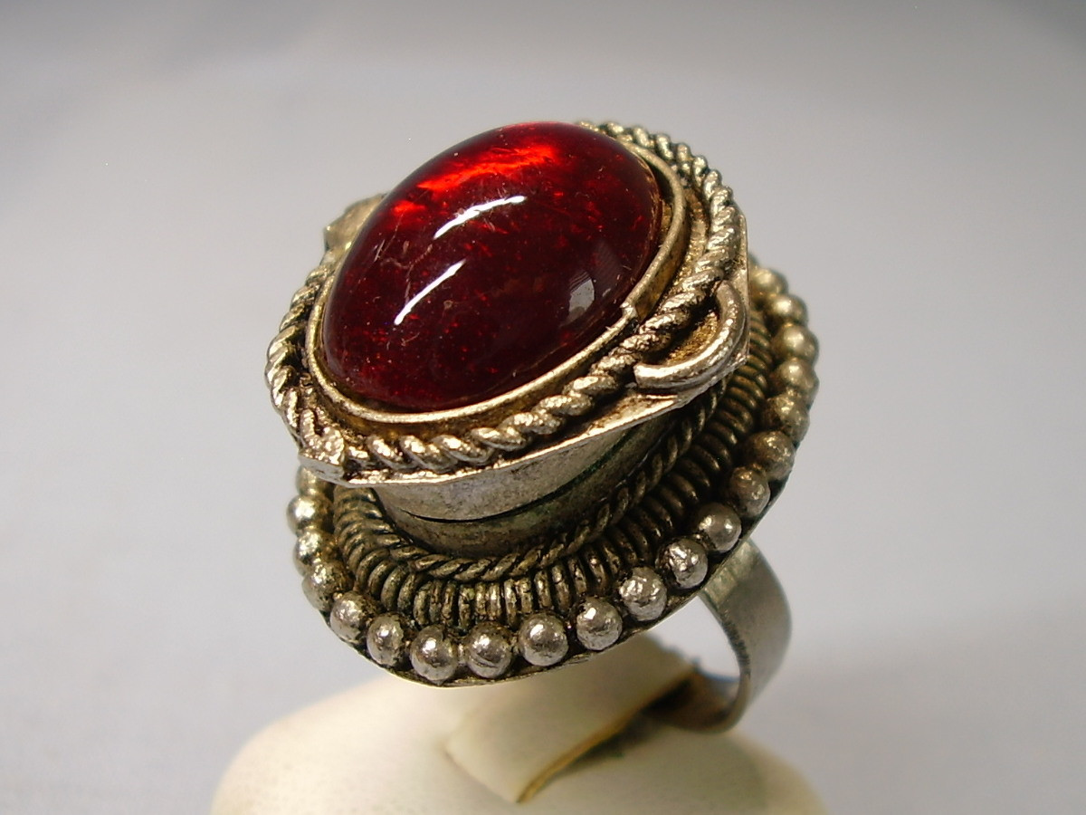 1345386. ANTIKER GIFTRING RING MIT GEHEIMFACH.