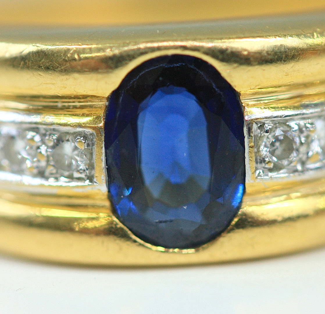 1346480. RING, 18 Karat Gold, Saphir, Diamanten.