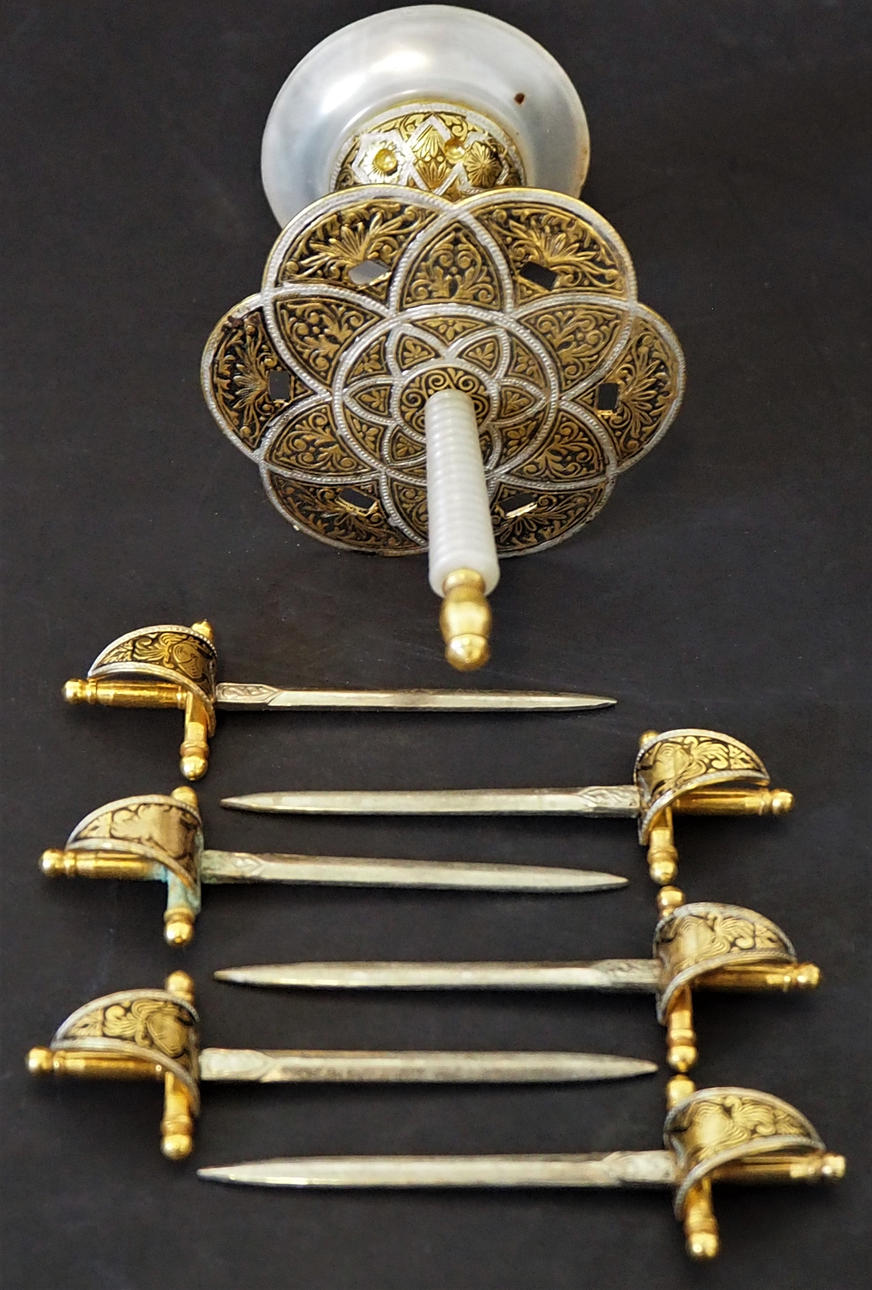 1351027. COCKTAILSTÄBCHEN / SCHWERT, im Ständer, zwei Stück.