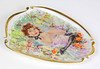 weiß glasiertes Porzellan mit unterglasurgrüner Manufakturmarke Alka Kunst Bavaria ALBOTH & Kaiser Porzellan sowie Parisienne, fünfpassige geschwungene Form mit Goldrand, junge Französin mit Rosenblütenkorb, ca. 18,5 x 25,5 cm.