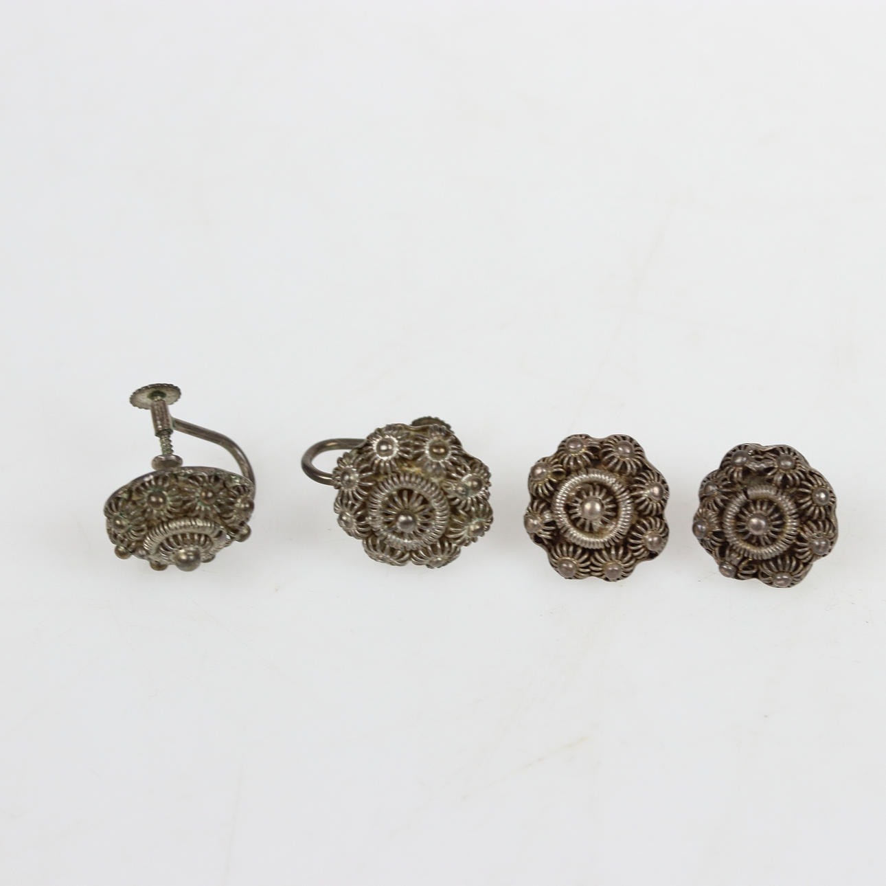 Kette mit Anhängern, ein Paar Ohrringe, 2 Knöpfe.