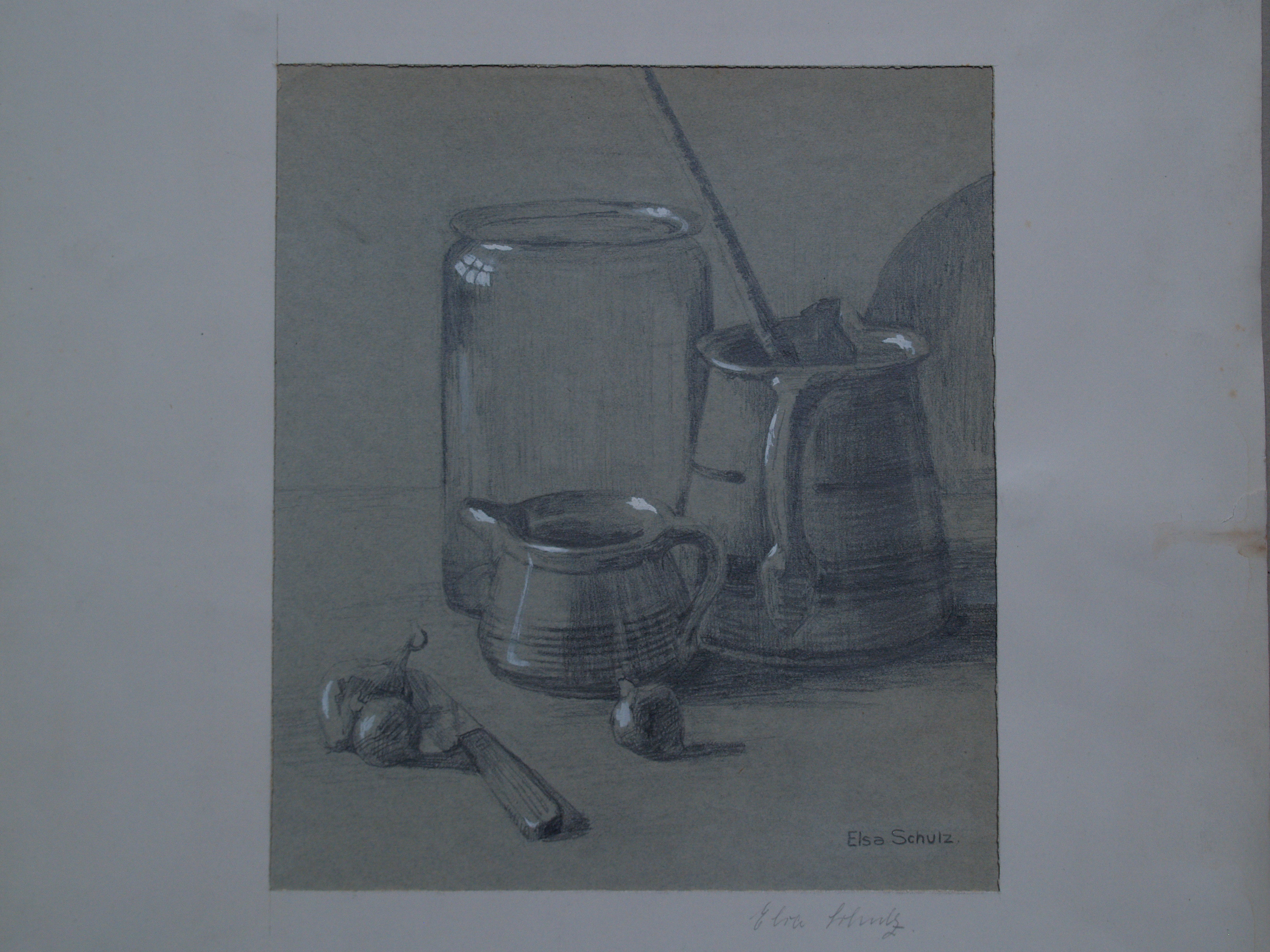 1352986. SCHULZ, ELSA. Stilleben, Bleistiftzeichnung.