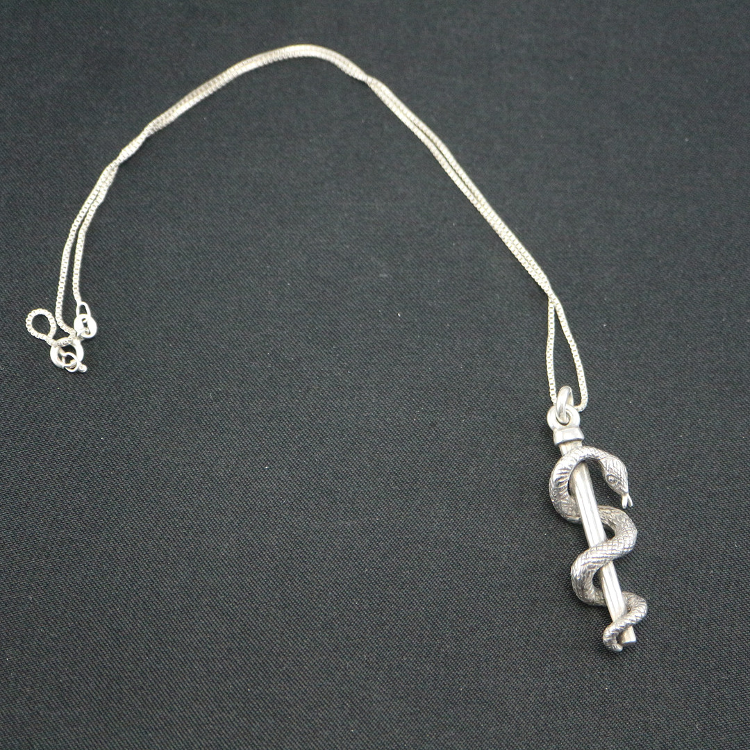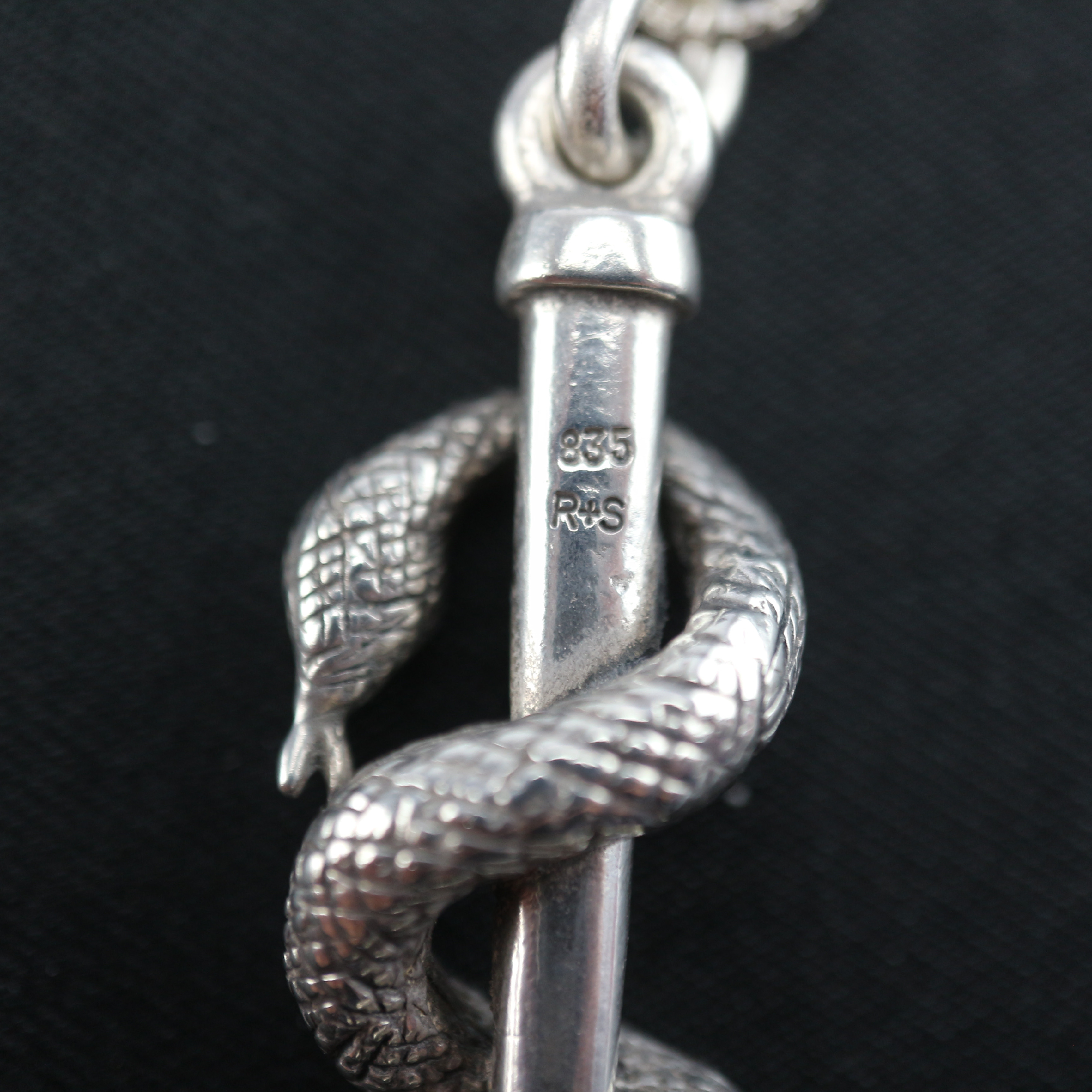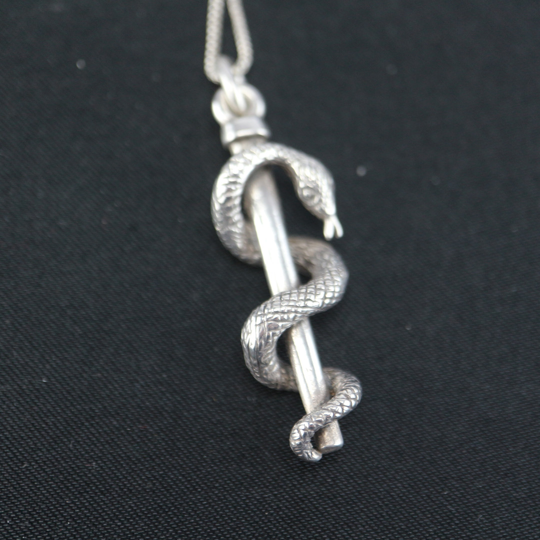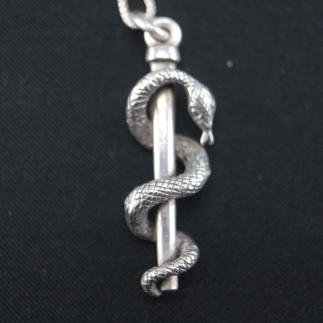 1353024. ANTIKER ÄSKULAPSTAB SCHLANGE 835 SILBER.