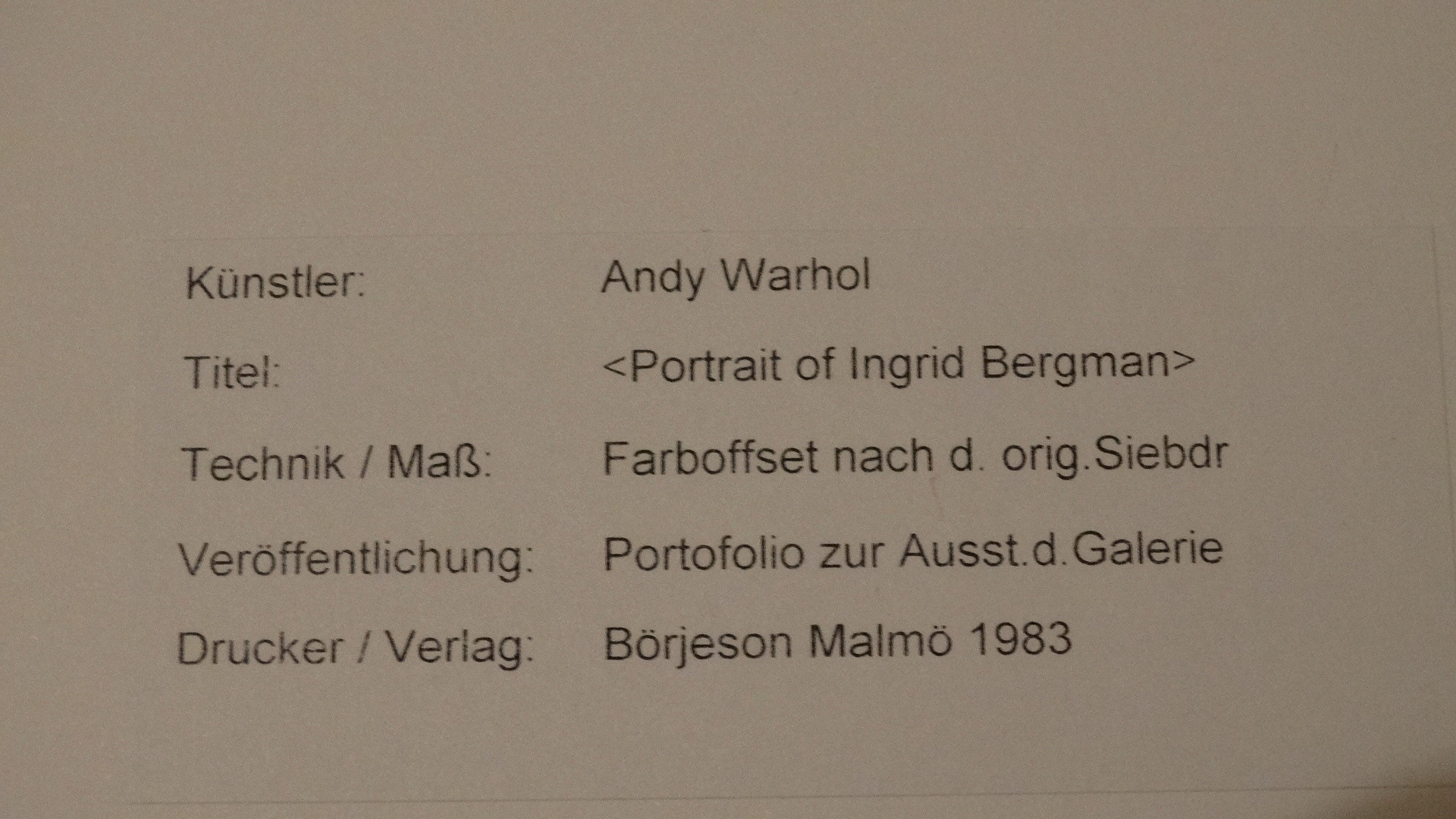 1353137. ANDY WARHOL. Ingrid Bergman, weiß-blau-schwarz. Offset, 1983.