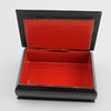 Russische Lackmalerei Dose, Xolui W.Malkow signiert & datiert, Kontrast von schwarzem Lack außen und knallrotem Lack im Innenbereich, Maße: 9 x 6 x 2,6 cm.
