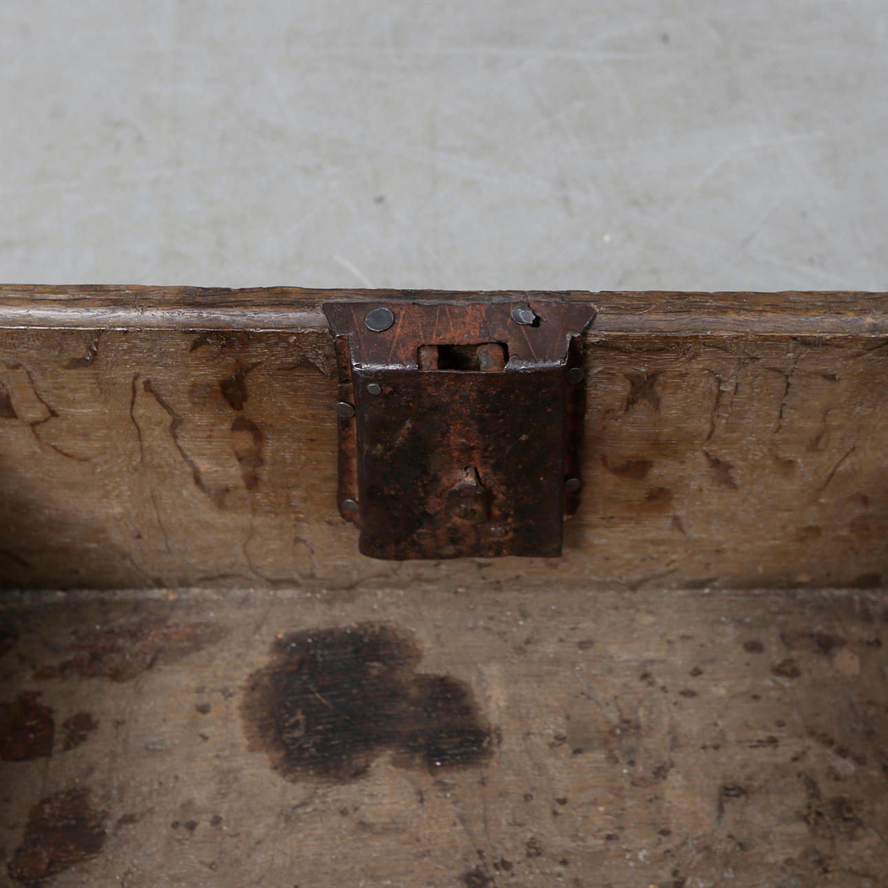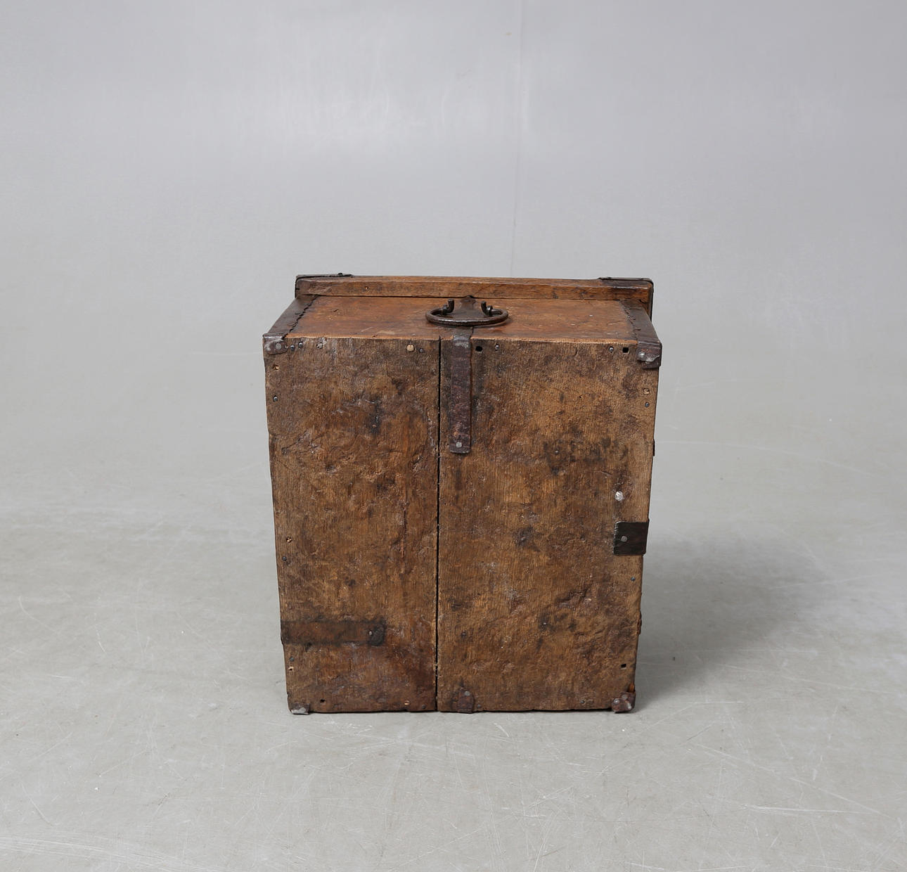 Schmiedeeiserne Beschläge, Schnittdekor, Länge ca. 48, Breite 41, Höhe 20 cm.