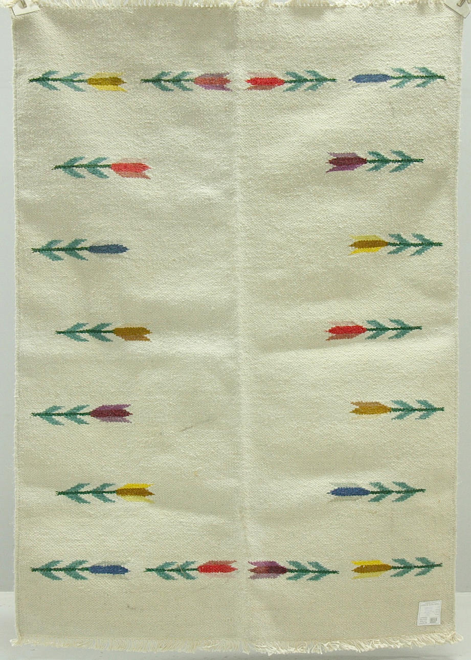 Handgewebt, Kette aus Wolle auf Baumwolle.