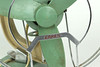 grün lackierter Eisenguß sowie Kunststoff u. verchromtes Metall, gemarkt Erres Type VT 41 van der Heem, schwebkbarer Tischventilator in massiver funktionsfähiger Ausführung.