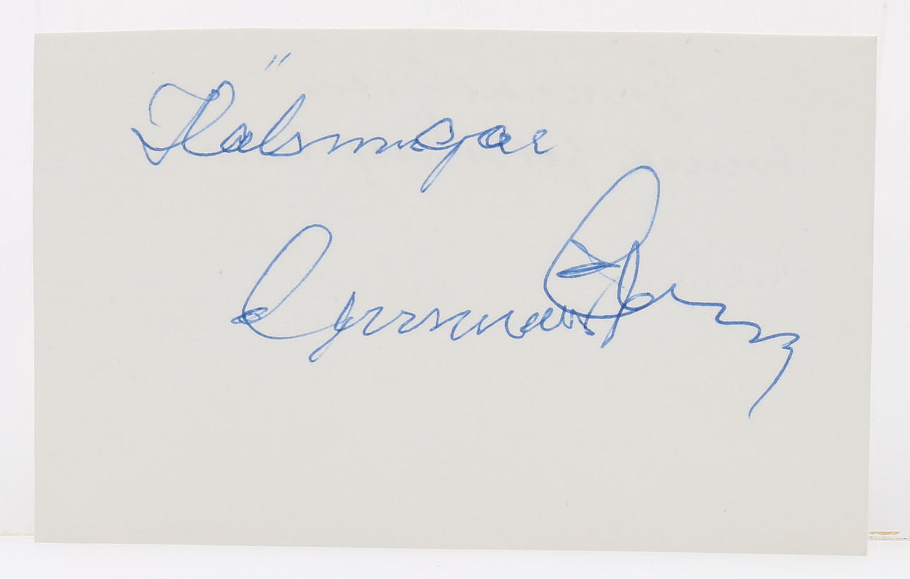 Floyd Patterson, Arne Borg, Björn Borg (nicht der Tennisspieler), Gunnar Gren, Bengt Nilsson, Emil Zatopek, Stålfarfar, Dan Waern, Ella Winblad von Walter, Olle Rimfors, Gösta Fåglum, Håkan Carlqvist, Tom Gorman, Karrie Webb, Thomas Wassberg, Pia Cramling, Boris Becker, Björn Borg (Tennis), Roy Emerson, Rod Laver, Helen Alfredsson, Alison Nicholas, Ludmilla Engqvist, - verschiedene Größen mit einigen Fotos - Provenienz: Sverker Hiort aus Ornäs Autogrammsammlung.