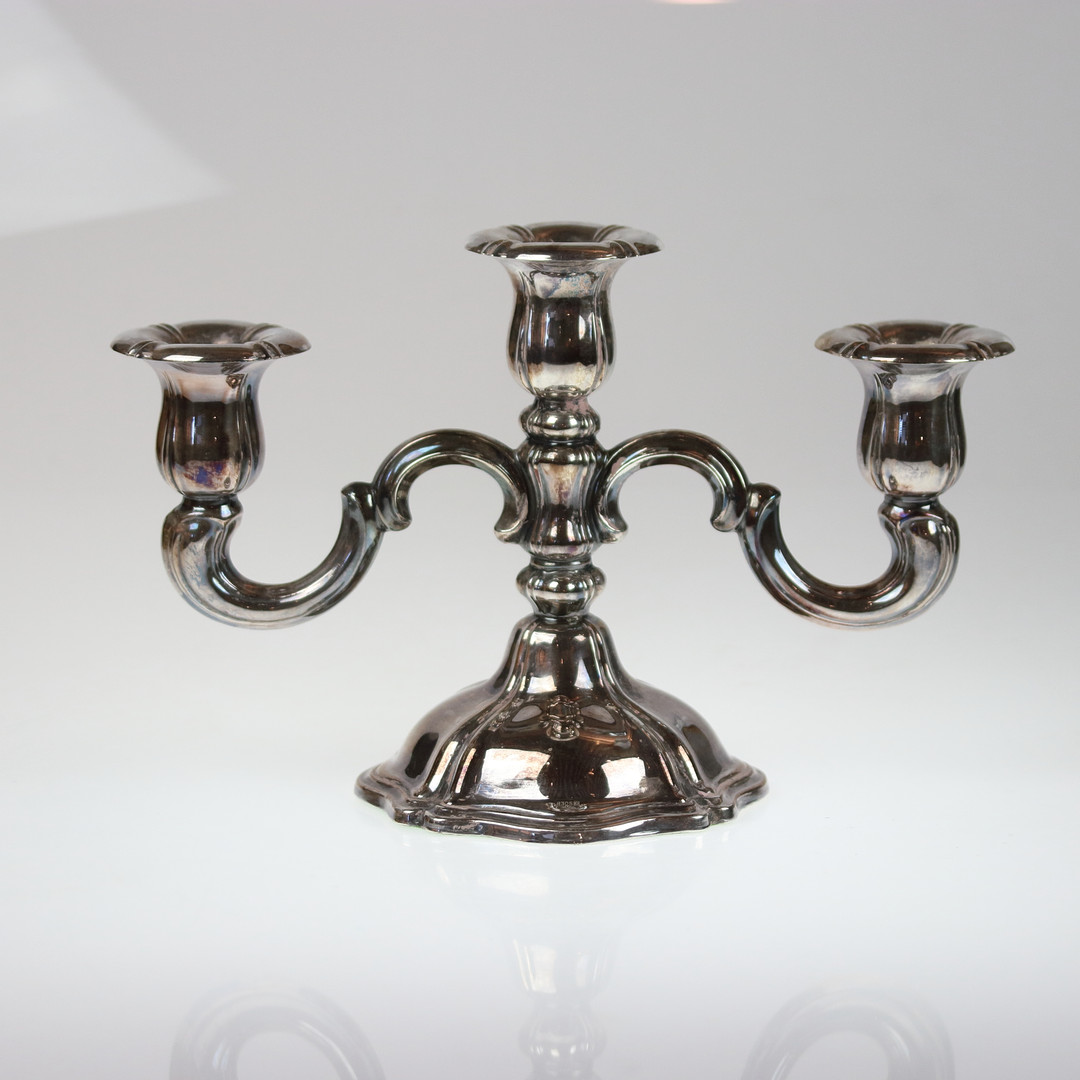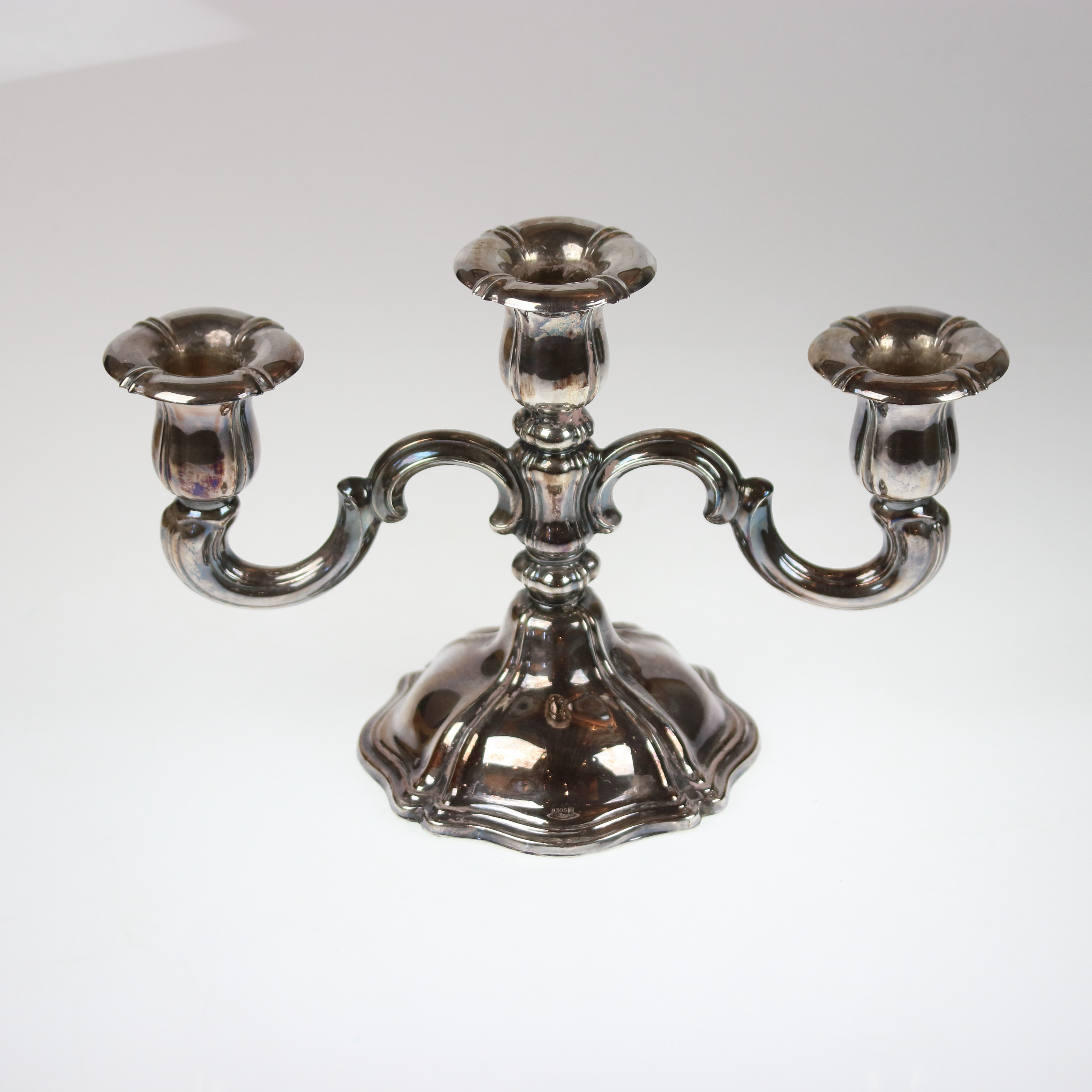 1372490. KERZENSTÄNDER, dreiarmig, Silber 830, Rokoko-Stil.