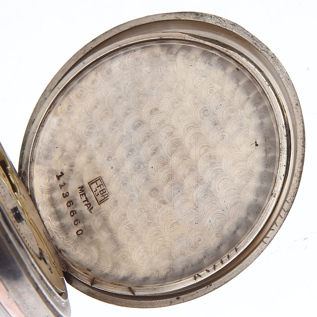 Silber 800. Durchmesser 50 mm. Gehäuse gekennzeichnet mit 1136660. Bewegung markiert Unitas.