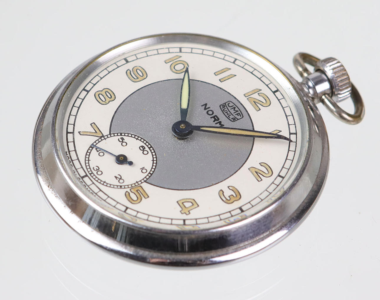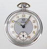 mechanische Taschenuhr Firma Ruhla, Chromgehäuse, Sekunde bei 6 Uhr, mit Leuchtzeiger in der Nacht, Ø ca. 5 cm.