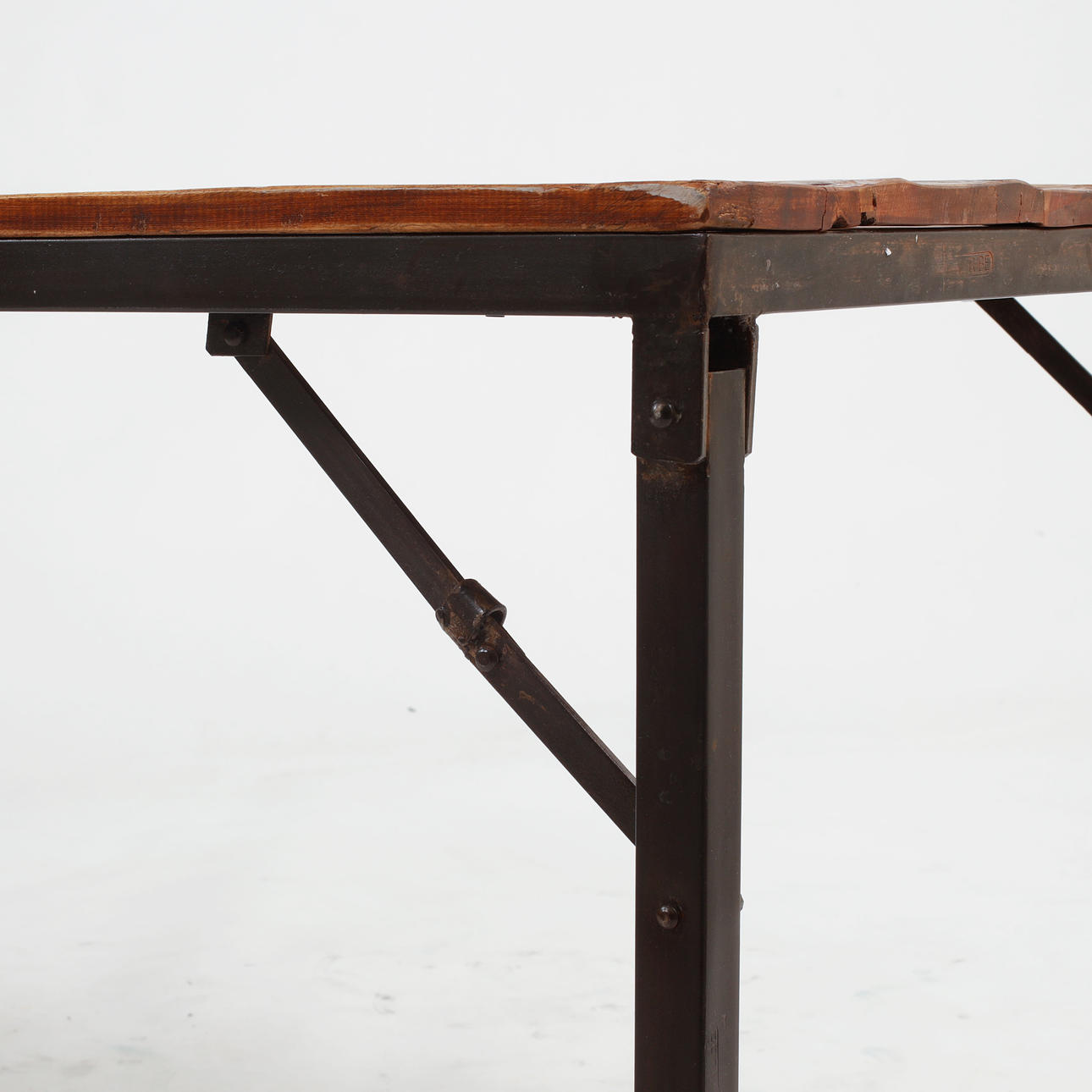 Holzbrett auf Metallsockel, Höhe ca. 73 cm, 90x181 cm.