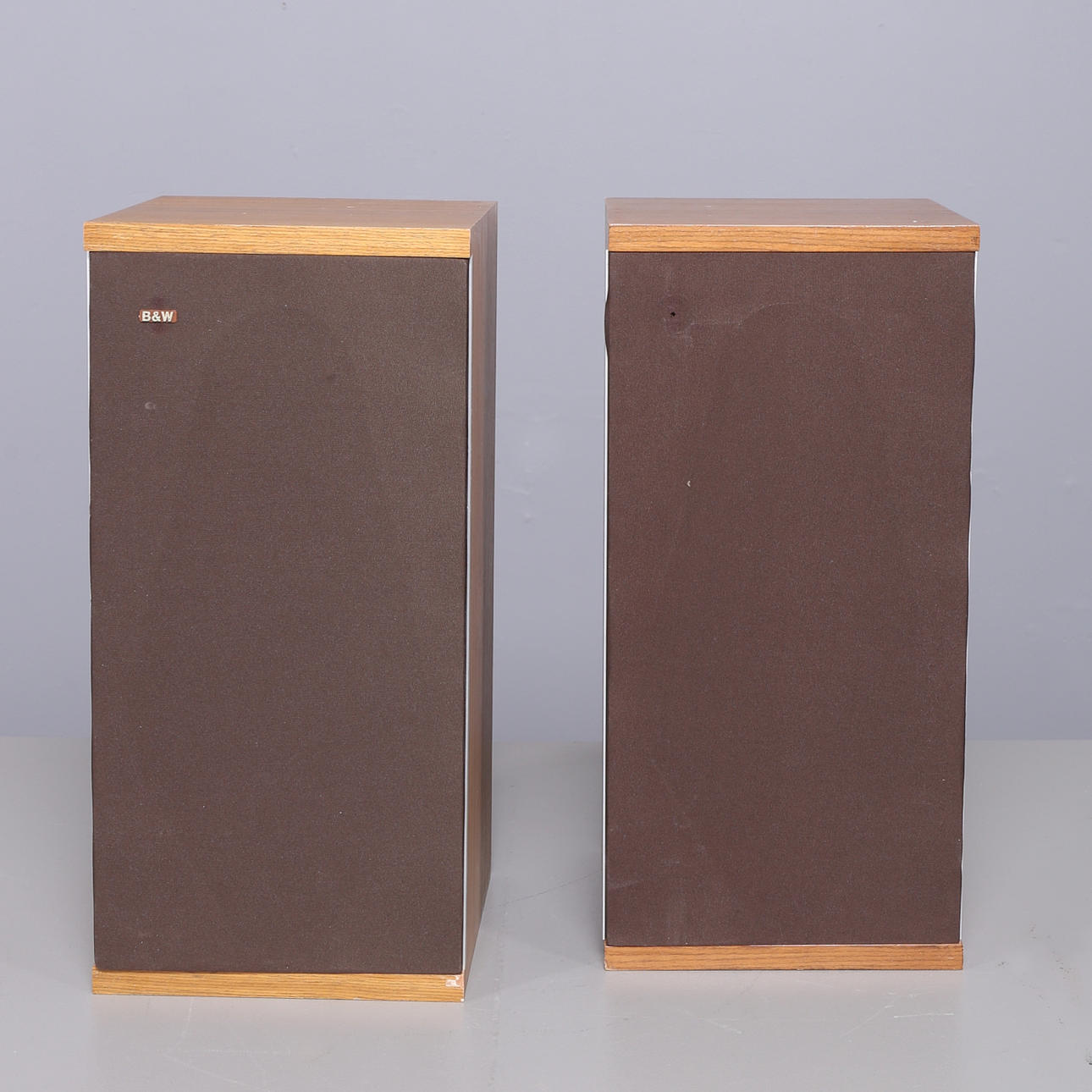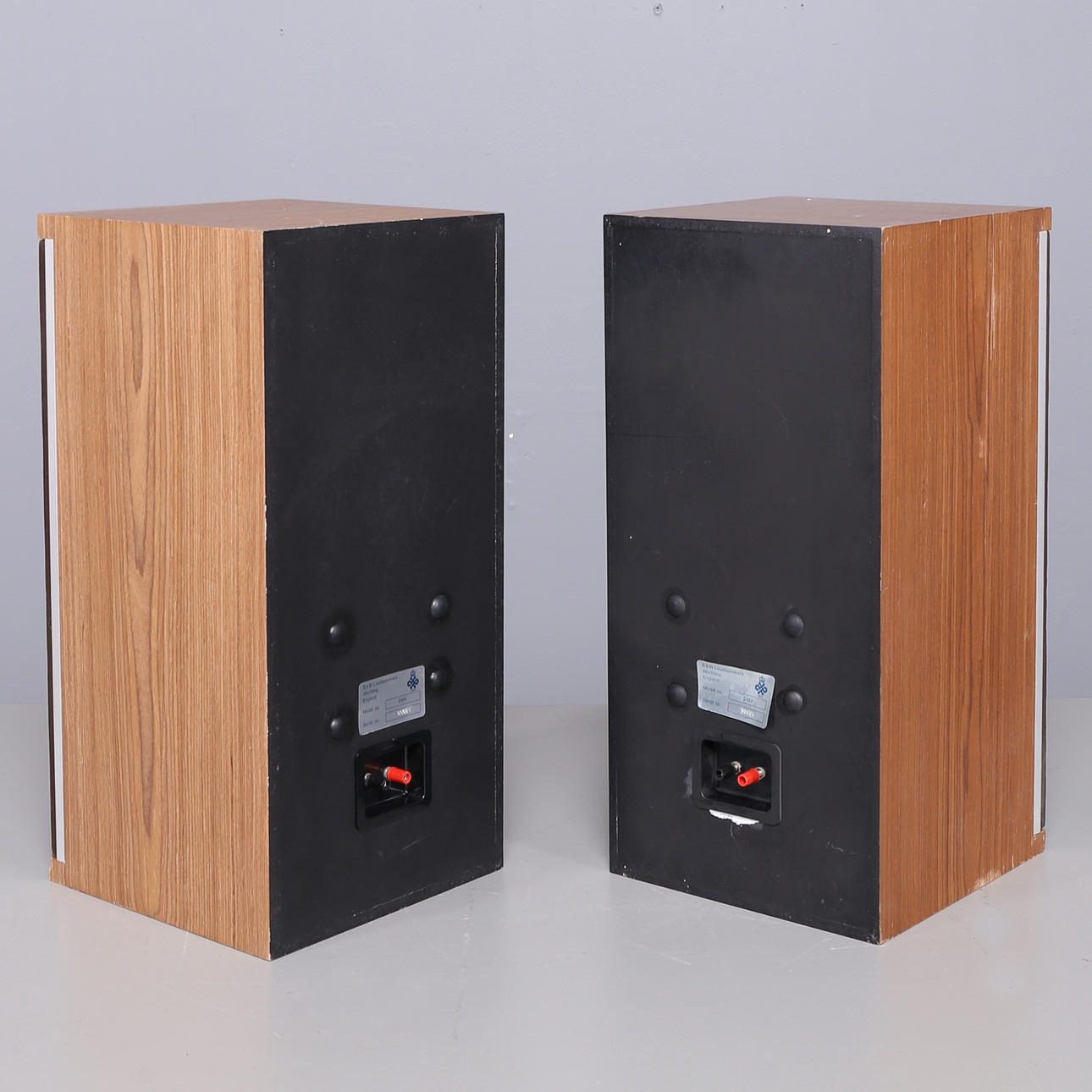 Bowers & Wilkins DM4 Lautsprecher, ein Paar. Erstes Baujahr 1972. Drei-Wege-Lautsprecher mit Gehäuse in Nussbaumfurnier.