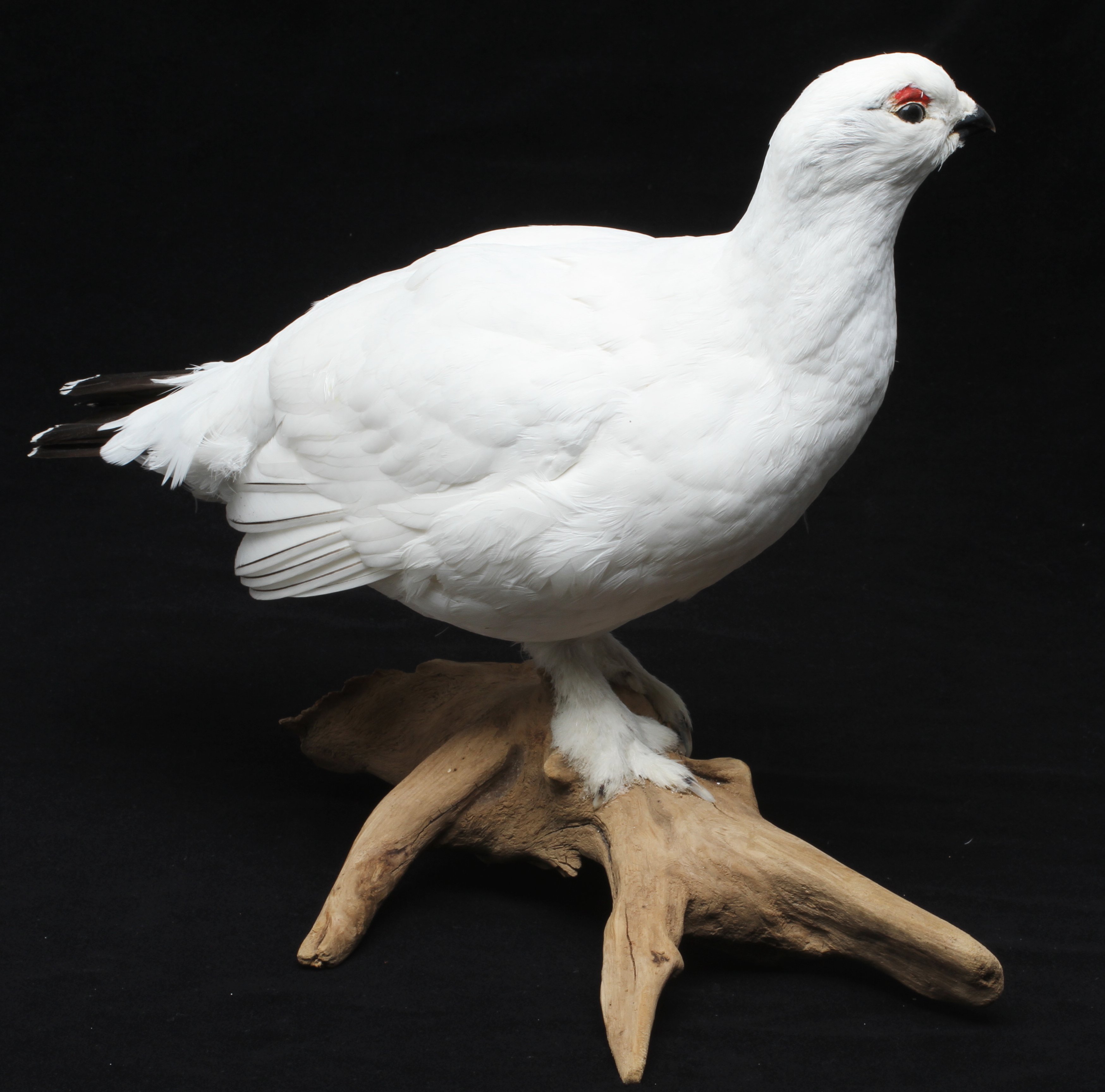 138414. RIPA, im Winteranzug, ausgestopft, auf Ast montiert.