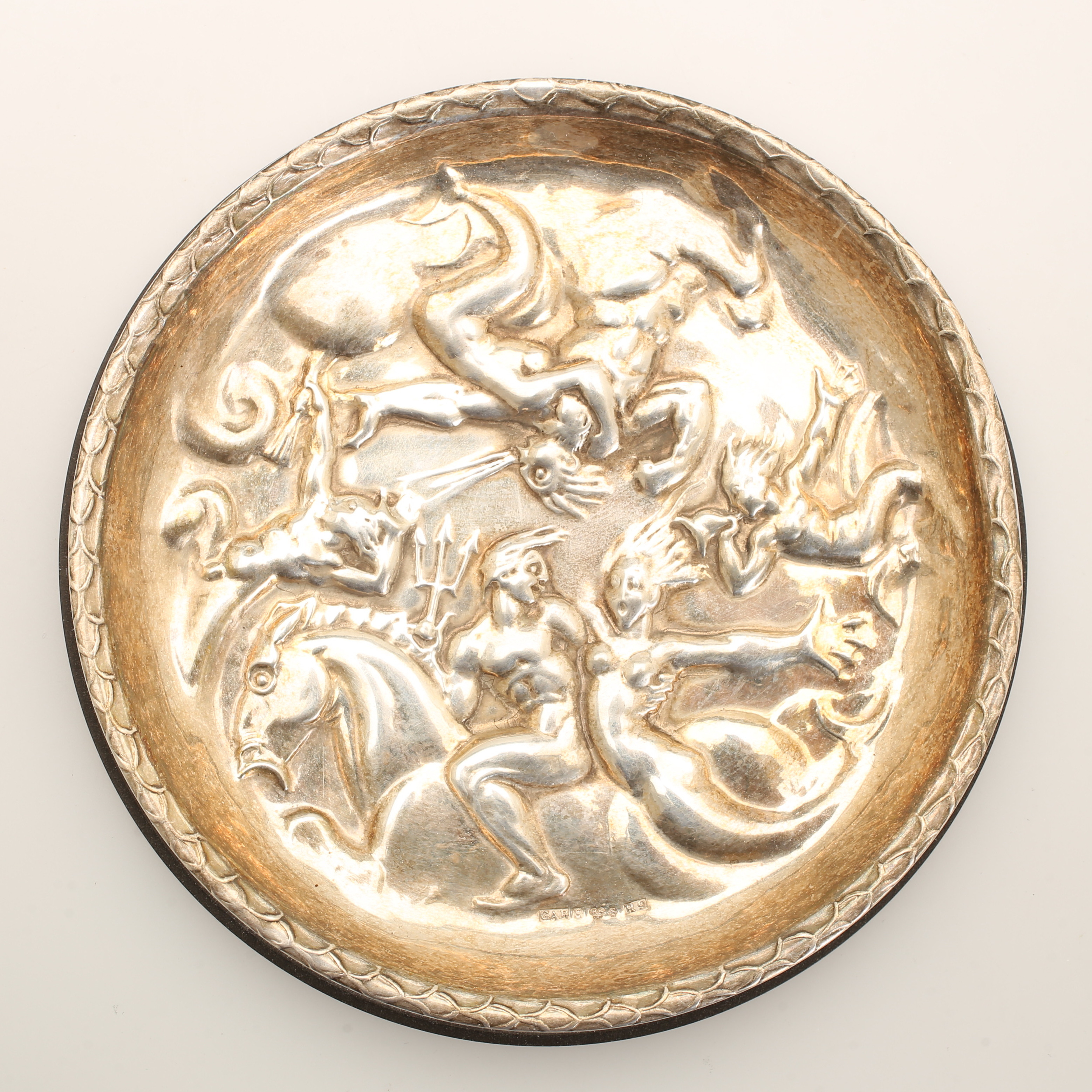 1386797. TELLER/UNTERSETZER, , Silber und Bakelit, nach Carl Milles, "Play of the Winds", GAB.