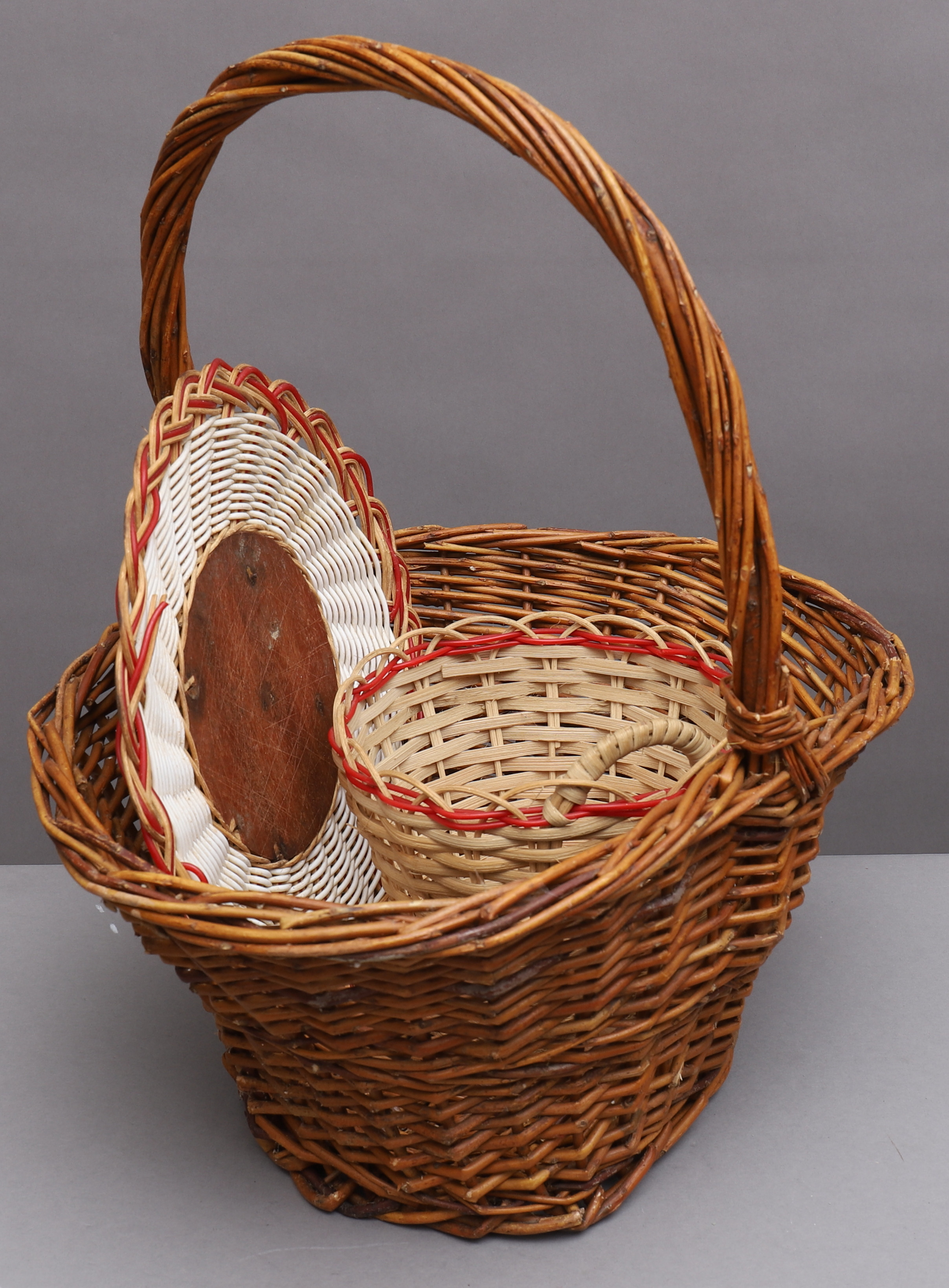 1387212. Ein Menge BRAIDED, 6 Stück, Körbe/Außenfutter/Tablett.