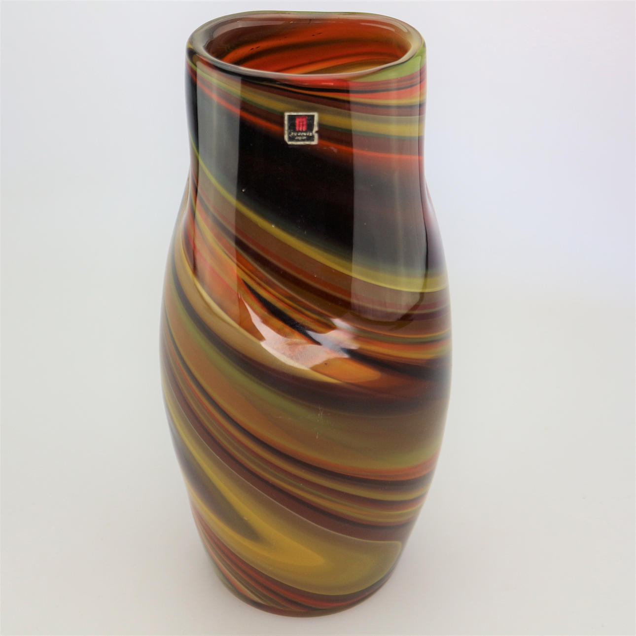 Kamei Japan, Glas Vase, mit original Aufkleber, 1960, Höhe: 25,5 cm.