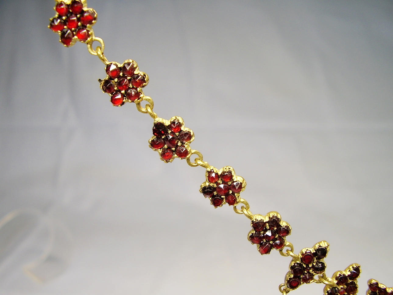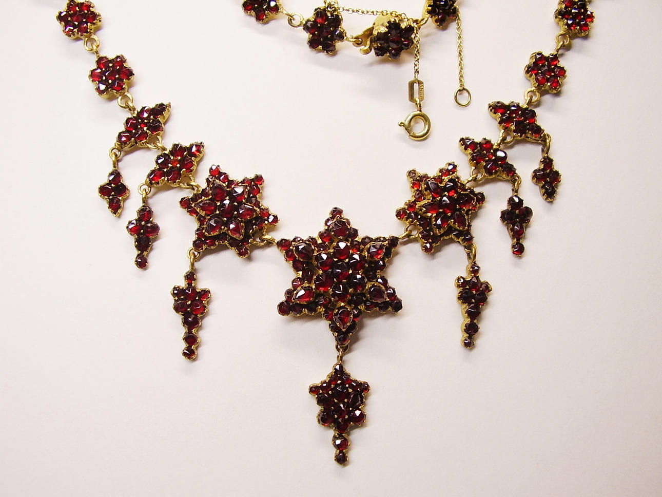 große und prachtvolle Ausführung aus Böhmen um 1850/60 in selten guter Erhaltung. Alle Granate komplett und antik erhalten .