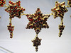 Alle einzelnen Sterne und Trauben sind komplett mit facettierten, blutroten, böhmischen Granaten im antiken Rosenschliff besetzt.