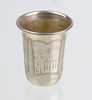 Silber dreifach russich punziert, Kiew 1905/14, Meister Irael Essevich Zakhoder Kiew 1892/1907, danach Erben von, konische sich leicht nach unten verjüngende Form mit umgeschlagenem Rand, umlaufende Handgravur in 4 Kartuschen, H ca. 4,5 cm, Gewicht ca. 16,45 Gramm.