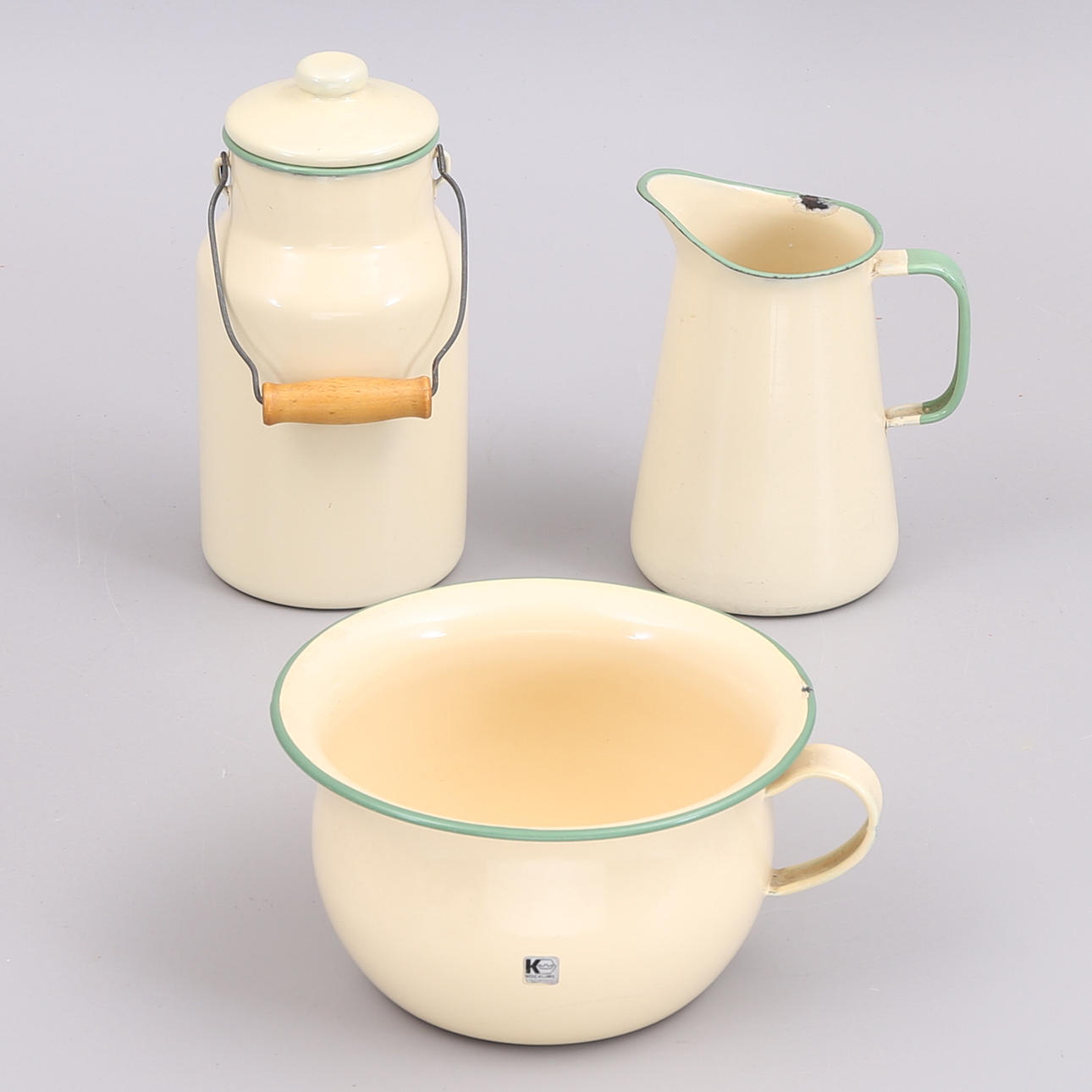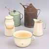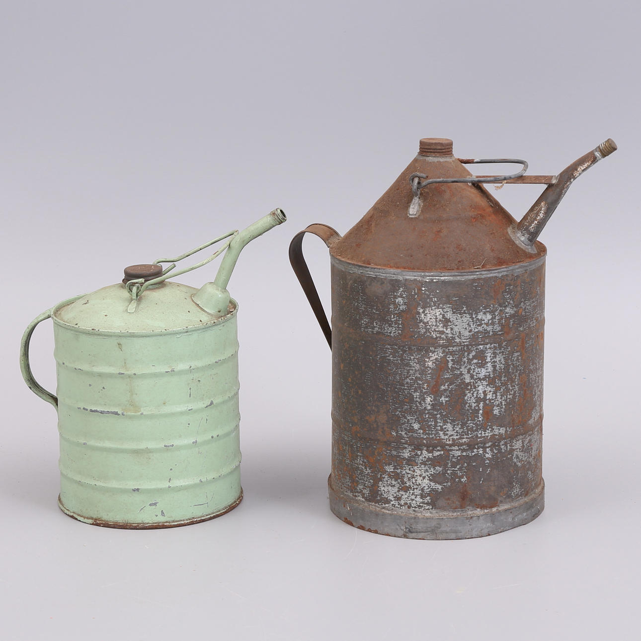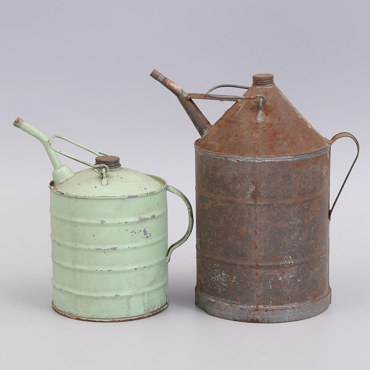 3 Teile Kockums, Töpfchen, Eimer, Krug, Höhe 12 - 26 cm. 2 Kerosinkanister, 26 - 32 cm.