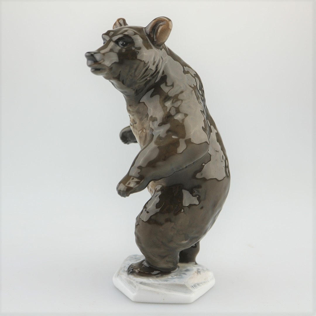 Rosenthal Porzellan Figur , Braunbär auf Sockel, Entwurf F. Heidenreich, Höhe ca. 16 cm, sechseckiger Sockel Dm. ca. 6,5 cm, auf der Unterseite bezn. 5074/13, Rosenthal Germany, auf dem Sockel gep. Heidenreich.