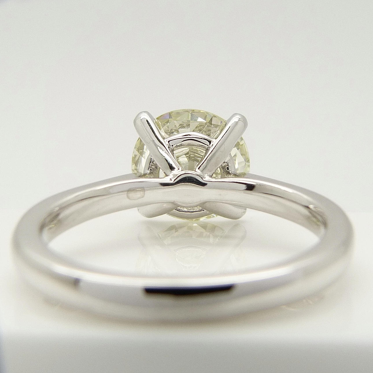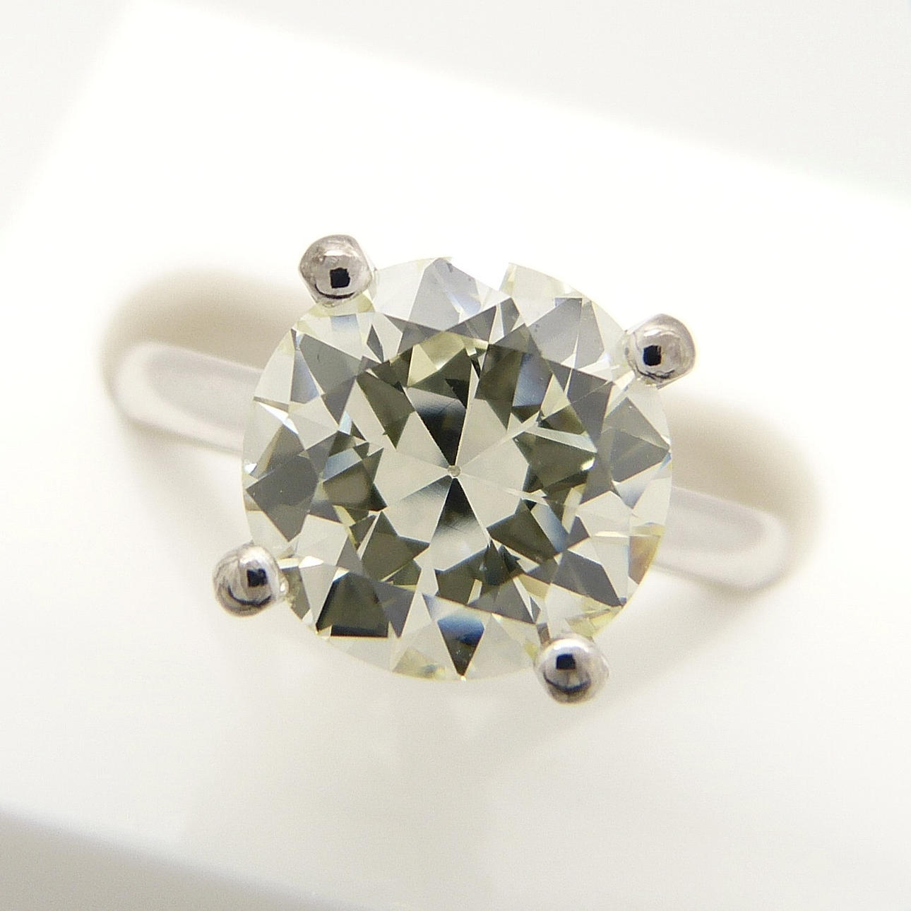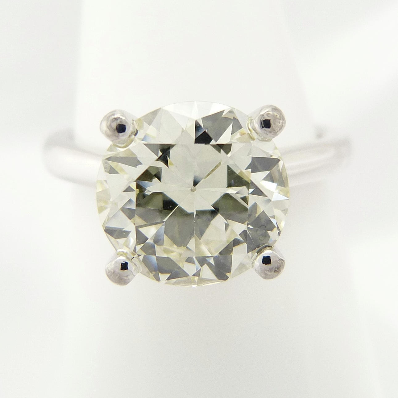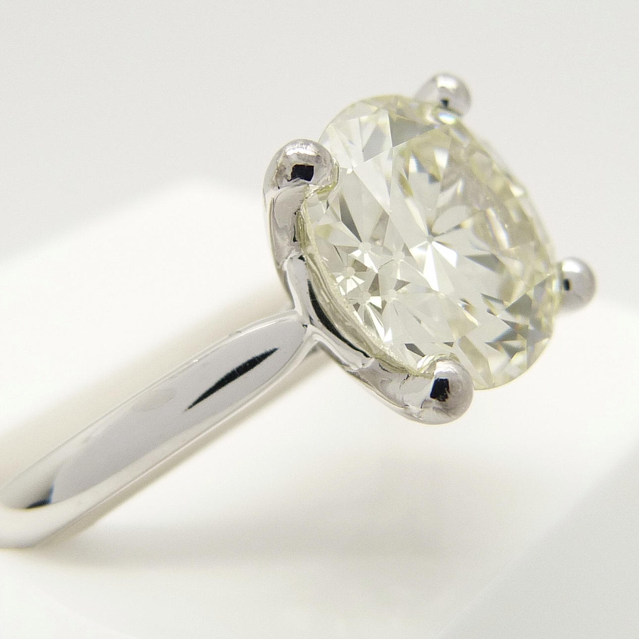 Eigenschaften des DIAMANT laut Zertifikat: • DIAMANT: Natur • Schliff: Rund, brillant • Karatgewicht: 3,10 ct • Farbgrad: L • Reinheitsgrad: VVS2 • Schliffgrad: Ausgezeichnet EU-Ringgröße: 52½. UK-Ringgröße: M Gewicht des Rings: 6,1 Gramm.
