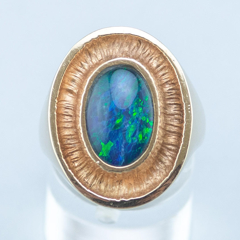 585er/14k Gelbgold mit einer Opal Triplette.